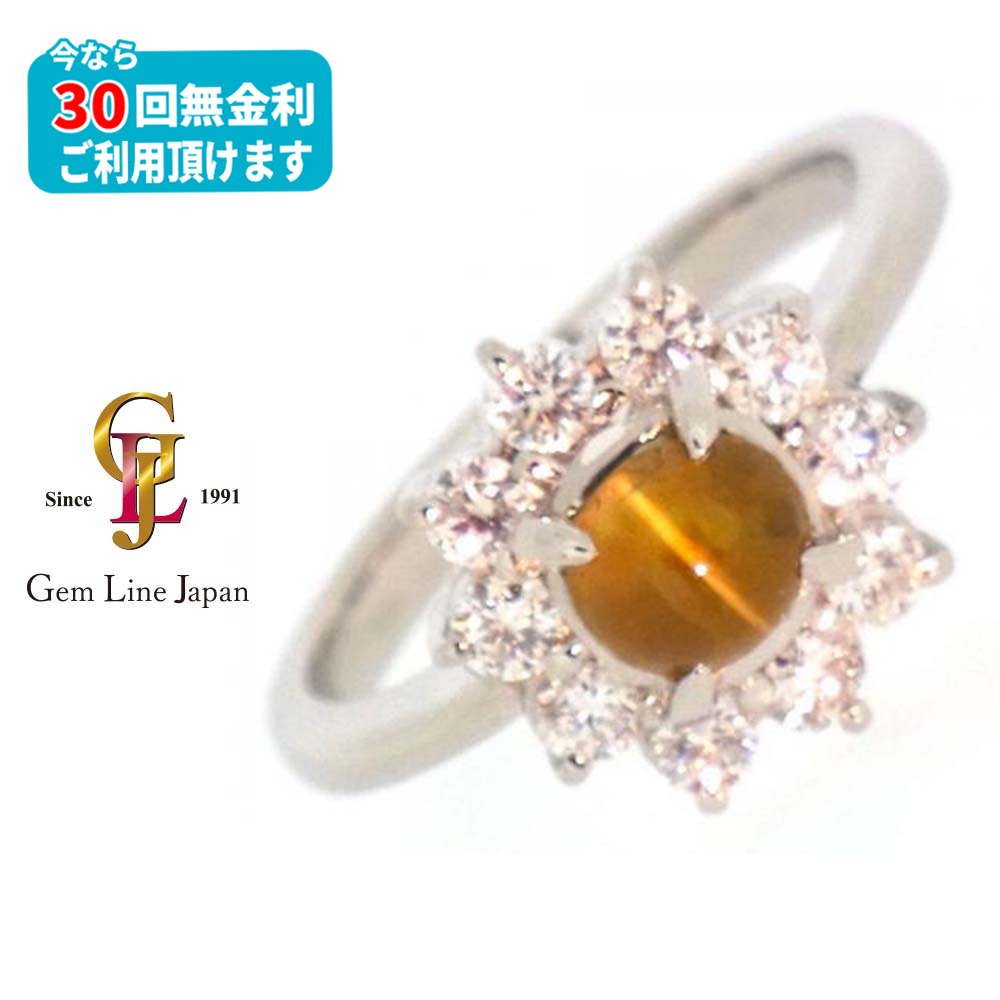 クリソベリルキャッツアイの周りを花のようにダイヤで装飾しているのが特徴的なプラチナリングです。キャッツアイとダイヤの輝きが手元をキュートでエレガントに演出してくれます。ソーティング付です。