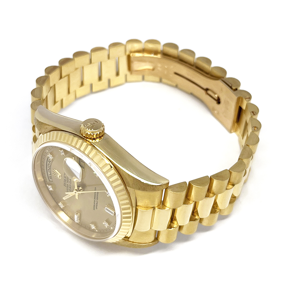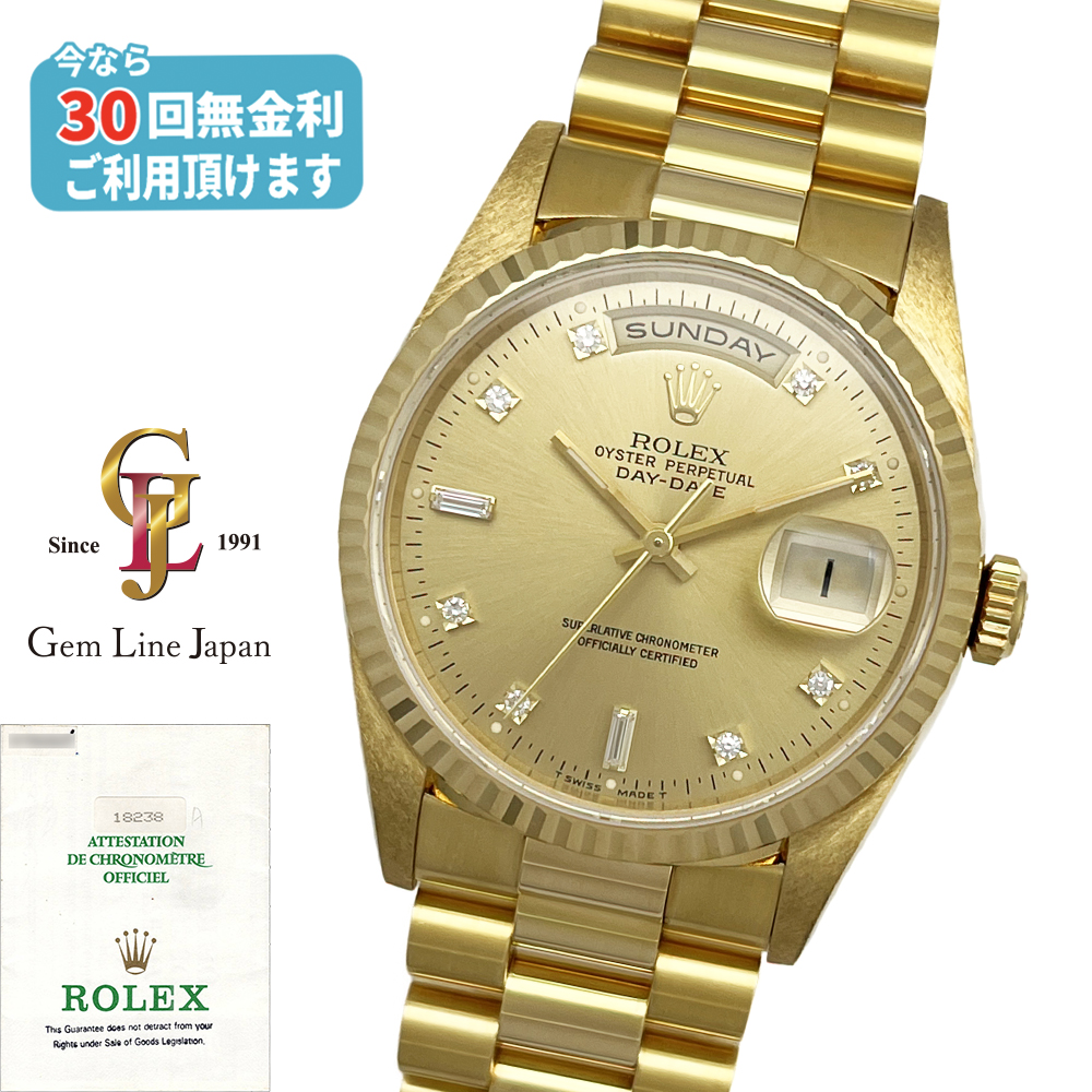 ロレックス デイデイト 18238A W番 シャンパン/純正10Pダイヤ 美品 ギャラ付 メンズ 自動巻 時計