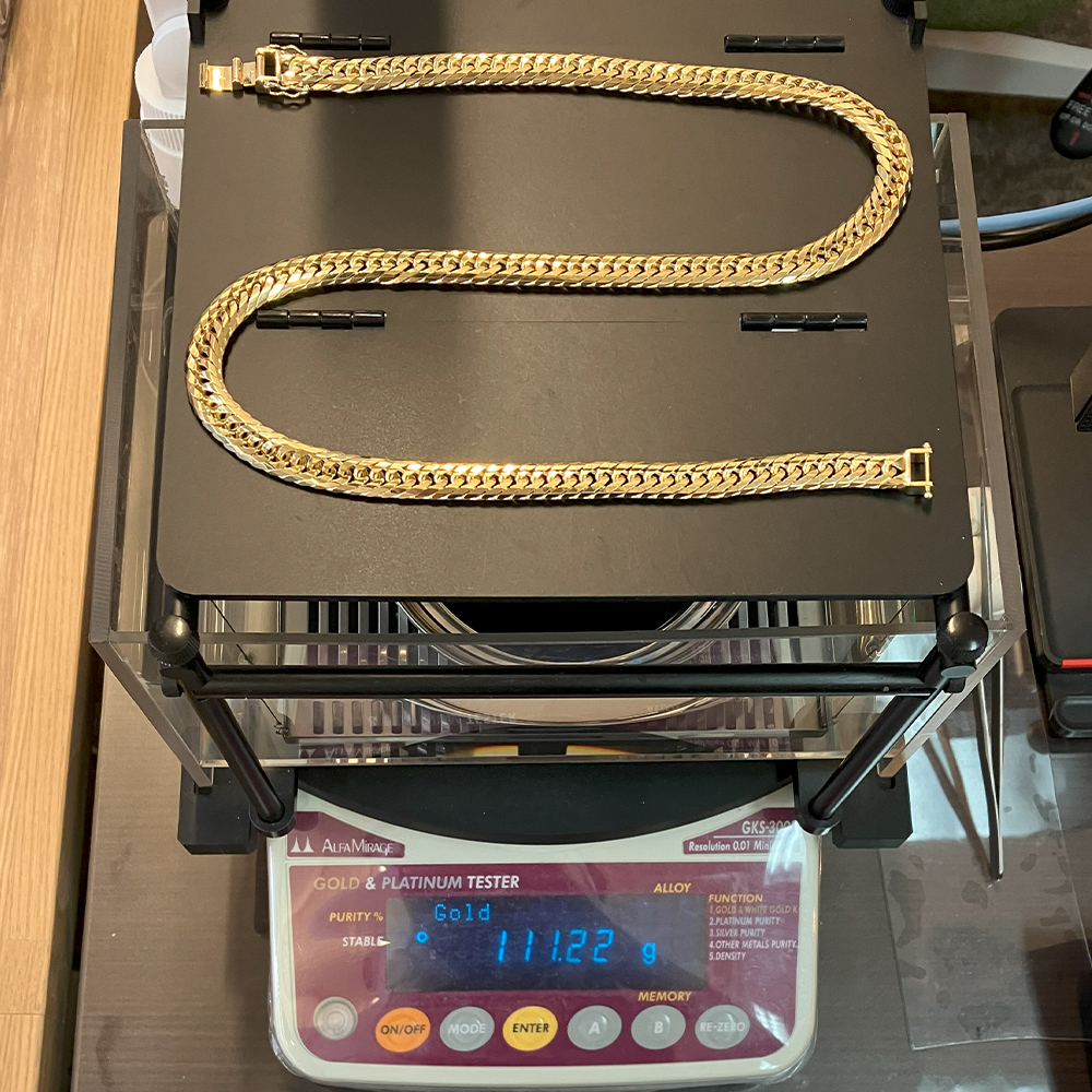 K18検定マーク付、111.22gの12面トリプル喜平ネックレスです。