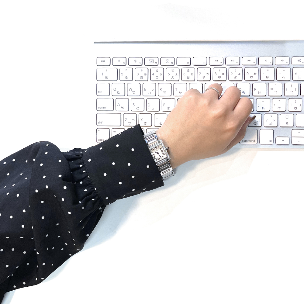 カルティエ タンクフランセーズ SM W4TA0008 が入荷しました。タンクフランセーズは、カルティエ創業150周年を記念して1996年に誕生して以降、今やカルティエを代表する傑作モデルにまで躍進しました。こちらは両サイドのベゼルに24石のダイヤモンドをセッティングした華やかな印象の1本です。本品は目立つ傷のない非常にきれいな状態です。ギャランティに2019年1月に国内正規販売店で購入した記載がございます。