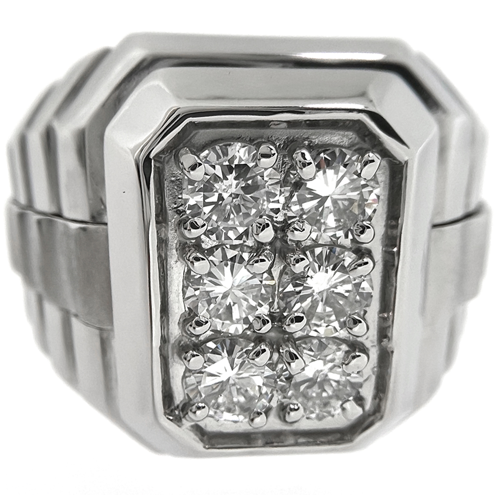 Pt900 ダイヤモンド 1.17ct メンズリング が入荷しました。6石トータル 1.17ctの上質なダイヤモンドをセッティングした非常にゴージャスなリングです。サイドは立体的な仕上げでセンター部分は艶消しになっており、洒落たデザインがエレガントな大人の雰囲気を演出してくれます。