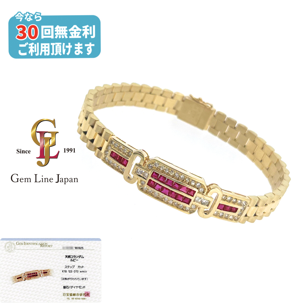 K18 29.55g ルビー 1.23ct ダイヤモンド 0.70ct プレジデントタイプ ブレスレット カード鑑付