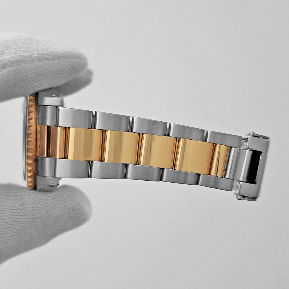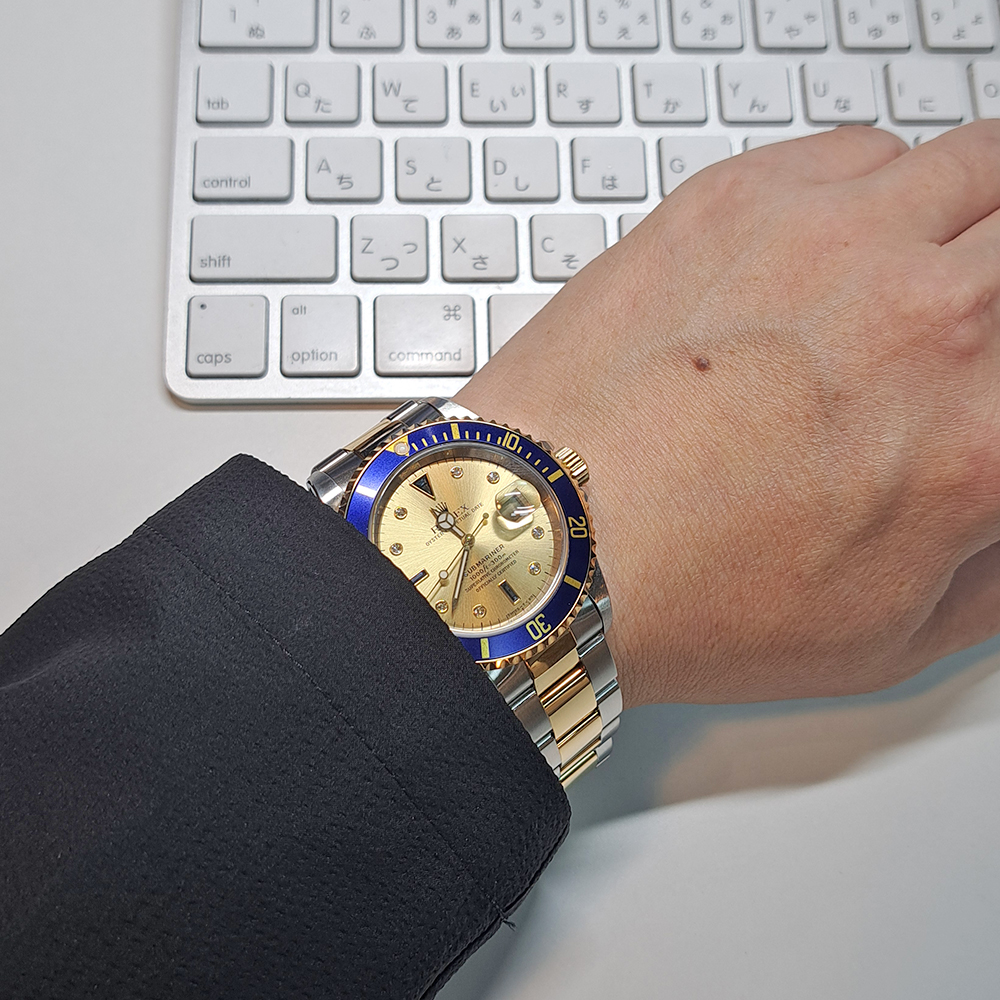 ブルーベゼルとシャンパンゴールドのダイヤルのコントラストがエレガントな逸品です。生産終了以降、年々市場に出回る個体が減少し、その稀少価値が上がっていますのでお早目にご検討下さい。