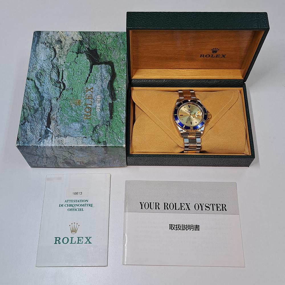 ロレックス サブマリーナ 16613SG A番 青サブ YG/SS シャンパンゴールド 純正サファイア・ダイヤ ギャラ付 メンズ 自動巻 時計