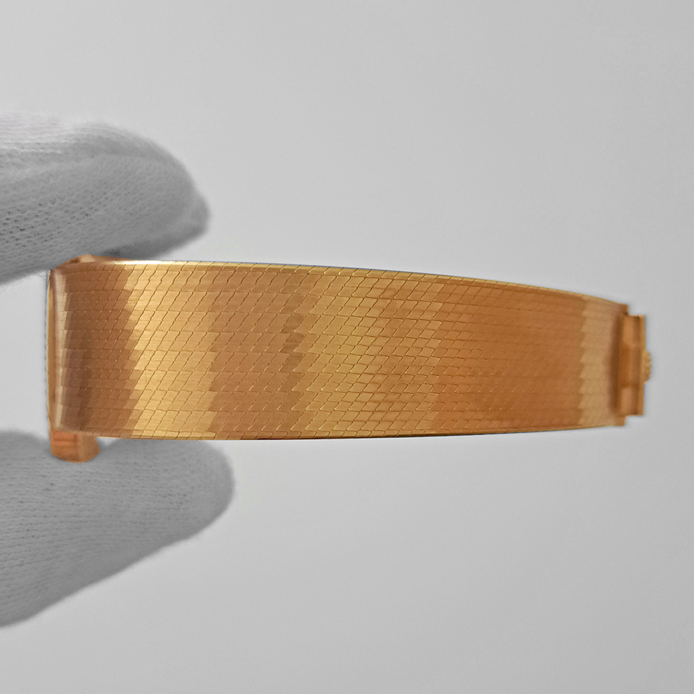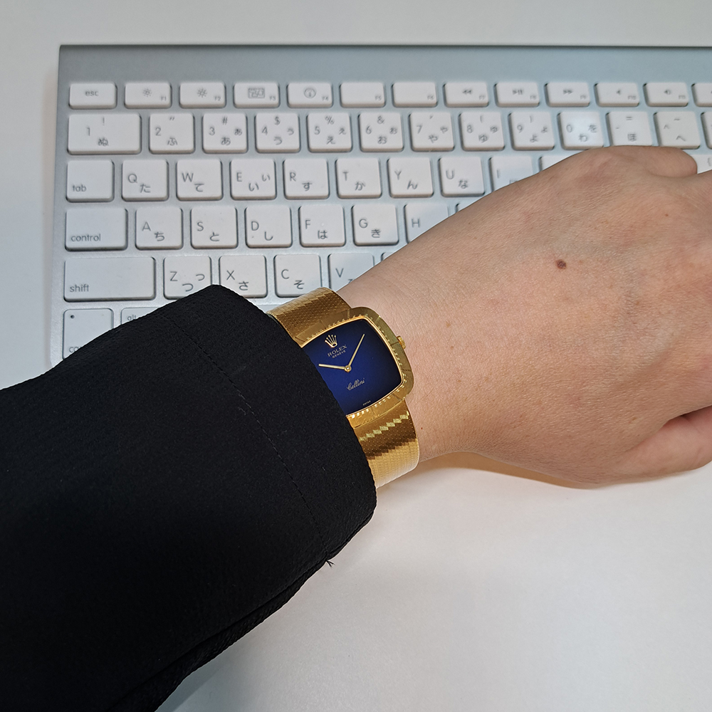 ヴィンテージ ロレックス チェリーニ 4320 ブルーグラデーションが入荷致しました。金無垢素材に深味と艶やかさを兼ね備えた美しいブルーグラデーションダイヤルが高級感を醸し出してくれます。ルーペで拡大するとベゼル等に微細な傷が御座いますが、製造年等から考えると綺麗な状態です。こちらの商品はあえてノンポリッシュで保管しております。ポリッシュをご希望の方はお申し付け下さい。