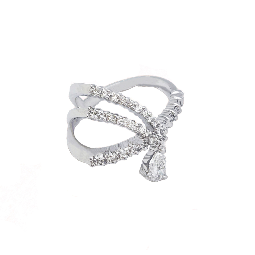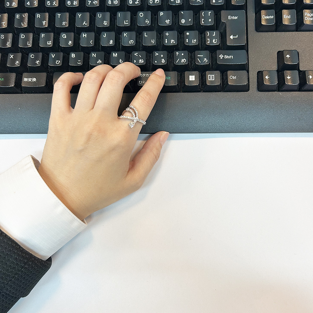 独創性と洗練を極めたジュエリーは成熟した大人のための「上質な遊び心」への誘いであり、日常を変える唯一無二の輝きです。リングの構造を斜めにする事で指に深くフィットし綺麗に見せることができます。