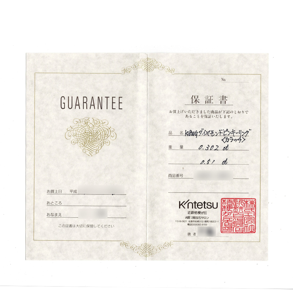 脇石質:0.51ct(所見でGHーVSクラス程度)