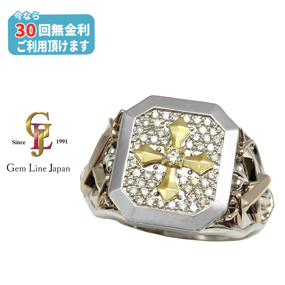 K18/Pt950 18.68g ダイヤモンド 0.34ct 上質パヴェダイヤモンド コンビ メンズ リング