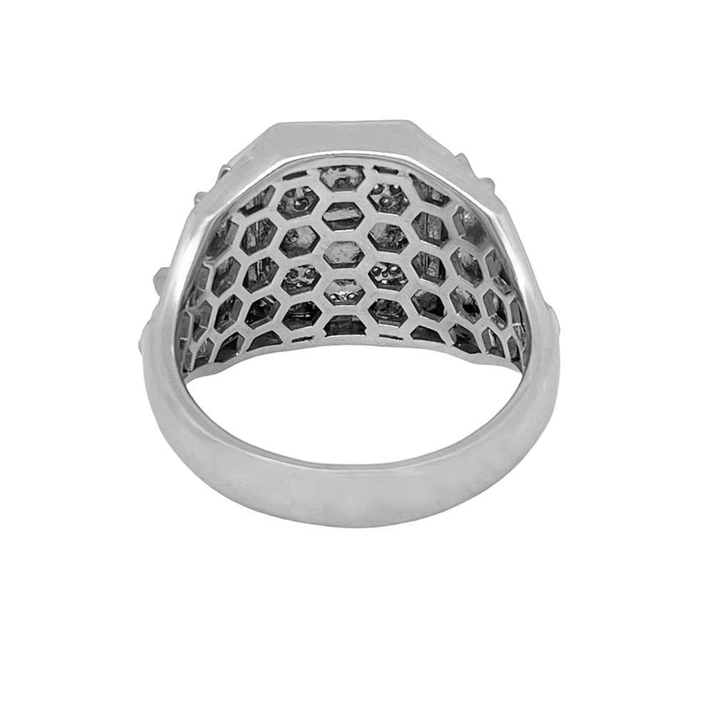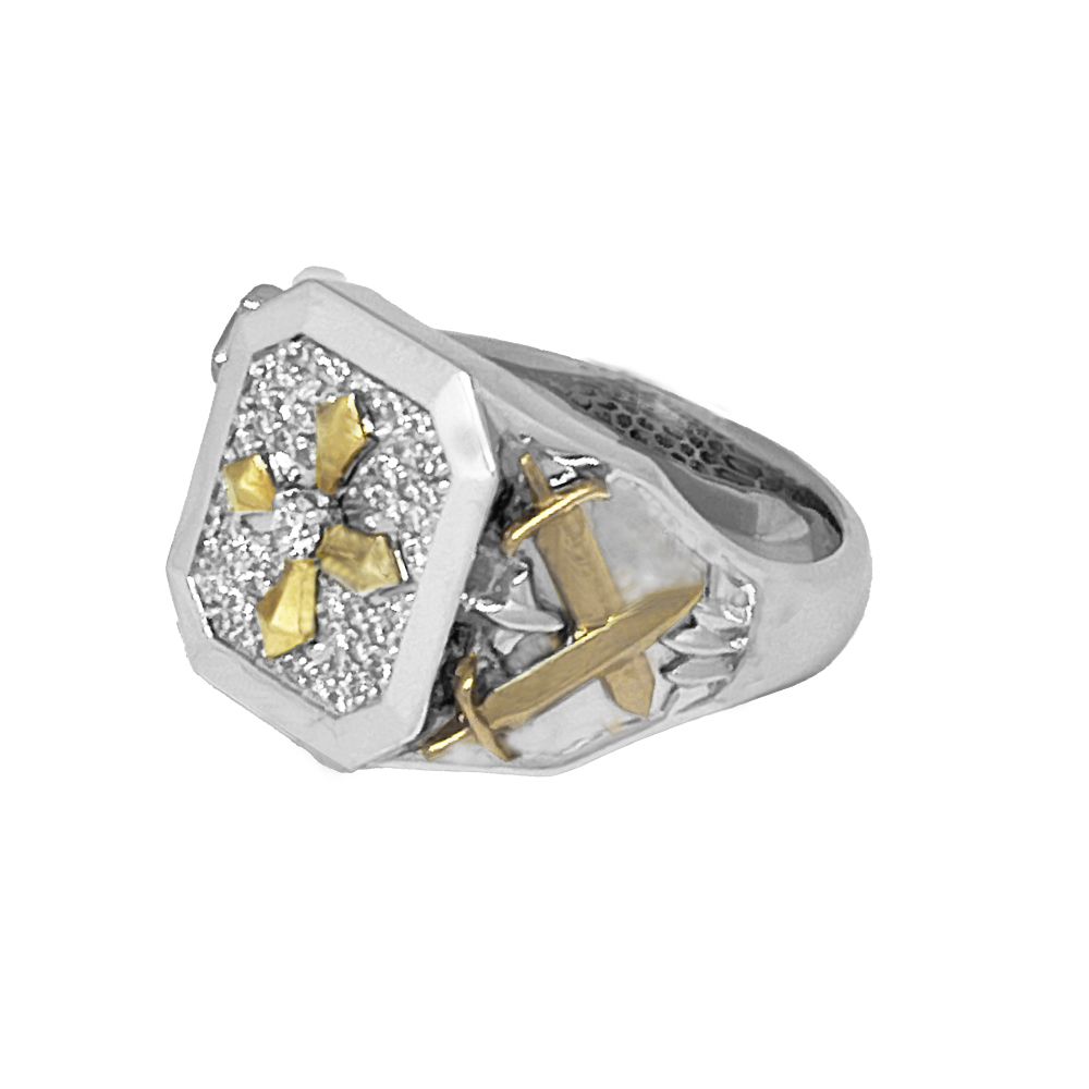 K18/Pt950 ダイヤモンド メンズ リングが入荷しました。印台モチーフの中央にクロスと両サイドにソードを模したデザインです。中央の一粒ダイヤモンドは良質で無色透明に近い輝きの良いルースをセッティングしており、周囲には上質なパヴェダイヤモンドを敷き詰めたゴージャスなメンズリングです。(クロスとソード部分はK18になります。)