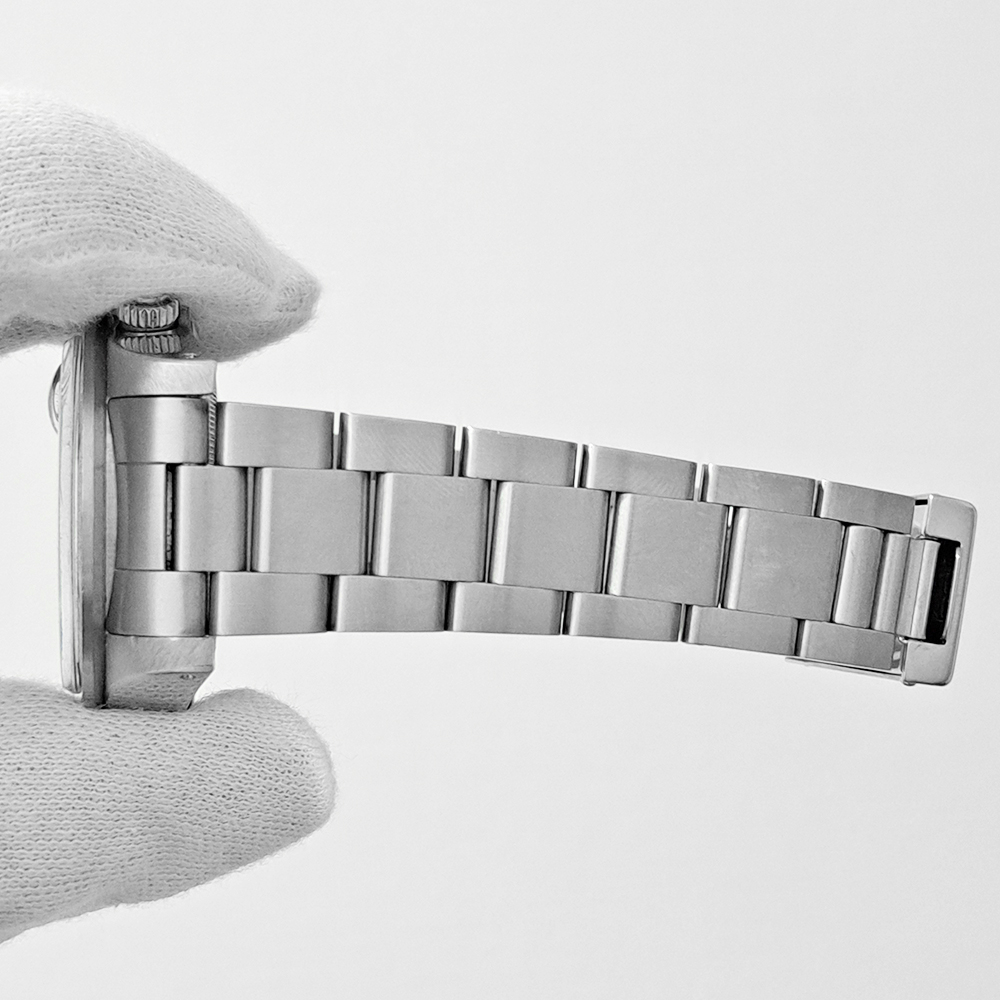 スッキリとしたフェイスにシルバーダイヤルとブラックインダイヤルの組み合わせのコントラストが良く映えてシックな雰囲気を醸し出してくれます。初めて高級時計をお求めになる方にもお勧めの逸品です。