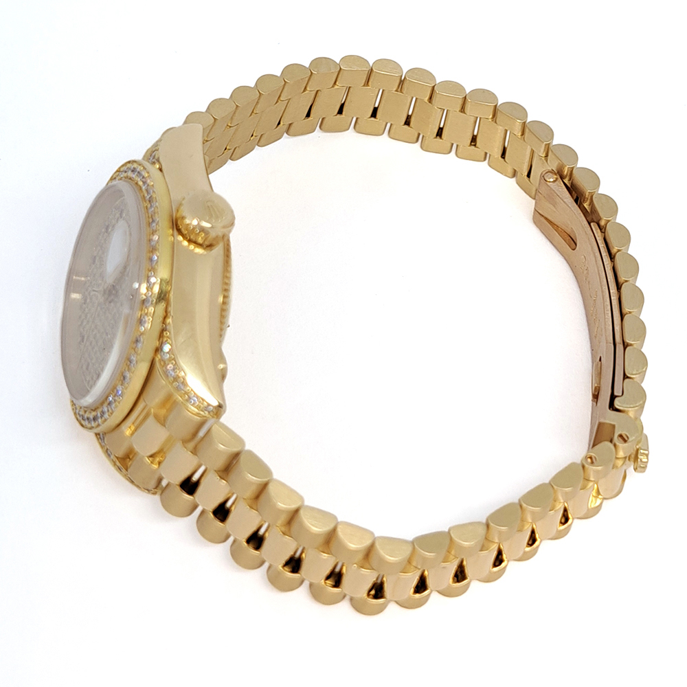 ロレックス デイトジャスト 69158ZR パヴェダイヤが入荷致しました。ダイヤルにはびっしりとパヴェダイヤと11P純正ルビーが、ベゼルとラグにもダイヤをセッティングしたロレックス レディースの中でも最高級のモデルです。こちらの商品は目立った傷等の無い綺麗な状態です。2025年10月にメーカーにてオーバーホールを実施しており、安心してご使用して頂けます。ギャランティに1991年2月に台湾にて購入した記載があります。