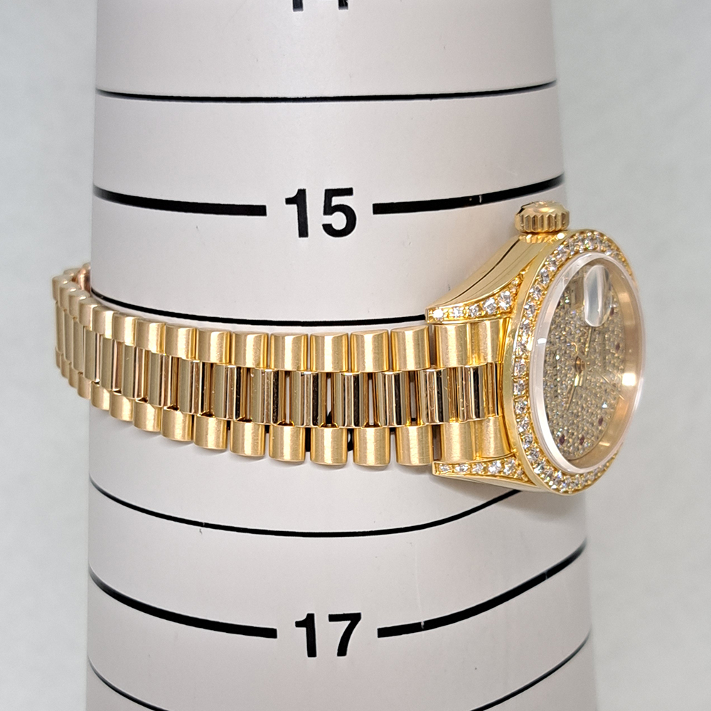 OH済 ロレックス デイトジャスト 69158ZR パヴェダイヤ ラグ・ベゼルダイヤ 11P純正ルビー 金無垢 ギャラ付 レディース 自動巻 時計