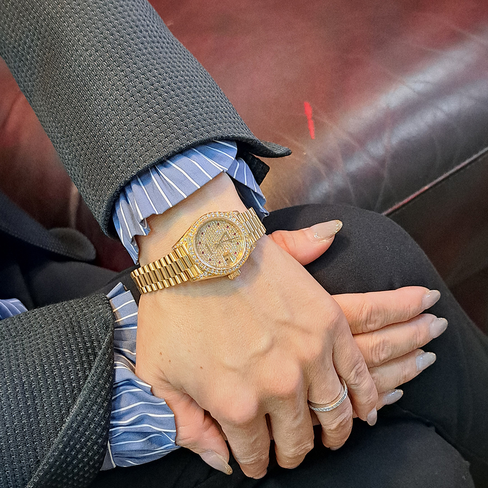 金無垢素材にダイヤがびっしりと埋め込む事により、まるでゴージャスなジュエリーブレスレットの様な感覚で装着して頂けるお品です。金が高騰しづけている今、資産価値として大切に保管されるのもいいかもしれません。