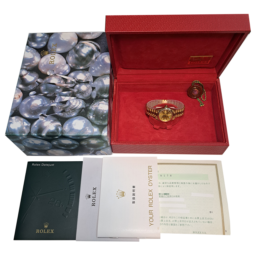 ロレックス デイトジャスト 79178G 金無垢が入荷致しました。ロレックスのレディース定番人気モデルで、金無垢素材に10Pの純正ダイヤモンドをセッティングしたゴージャスな逸品です。ギャランティに2002年12月に国内正規販売店にて購入した記載があります。こちらの商品は目立った傷等の無い綺麗な状態です。