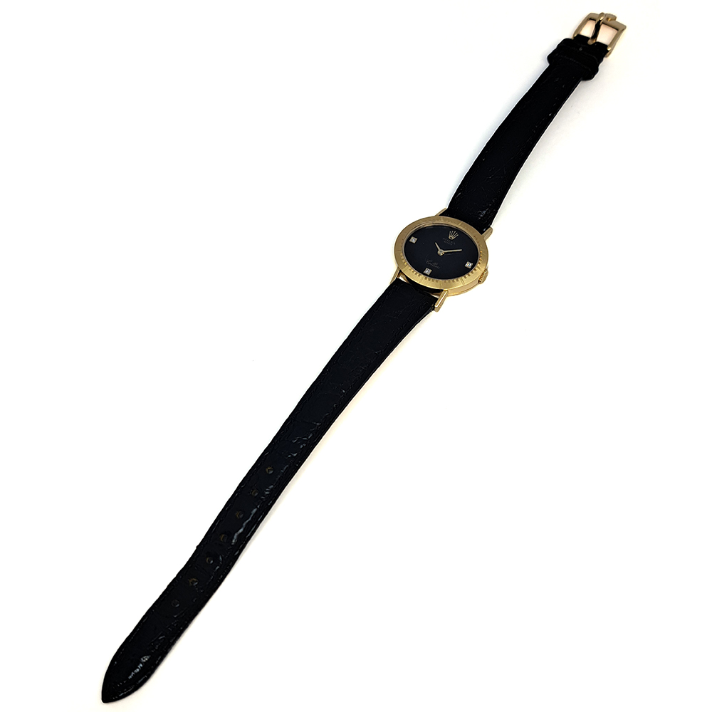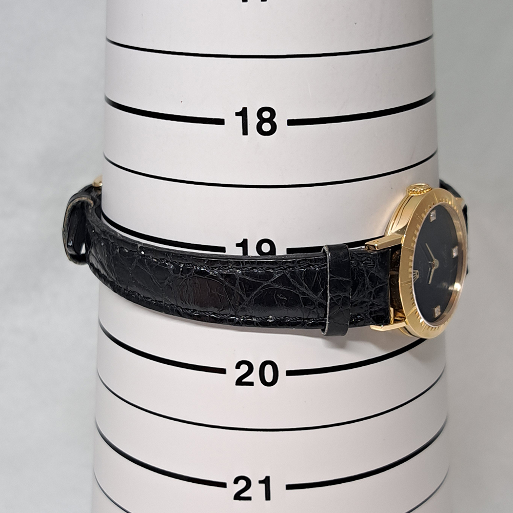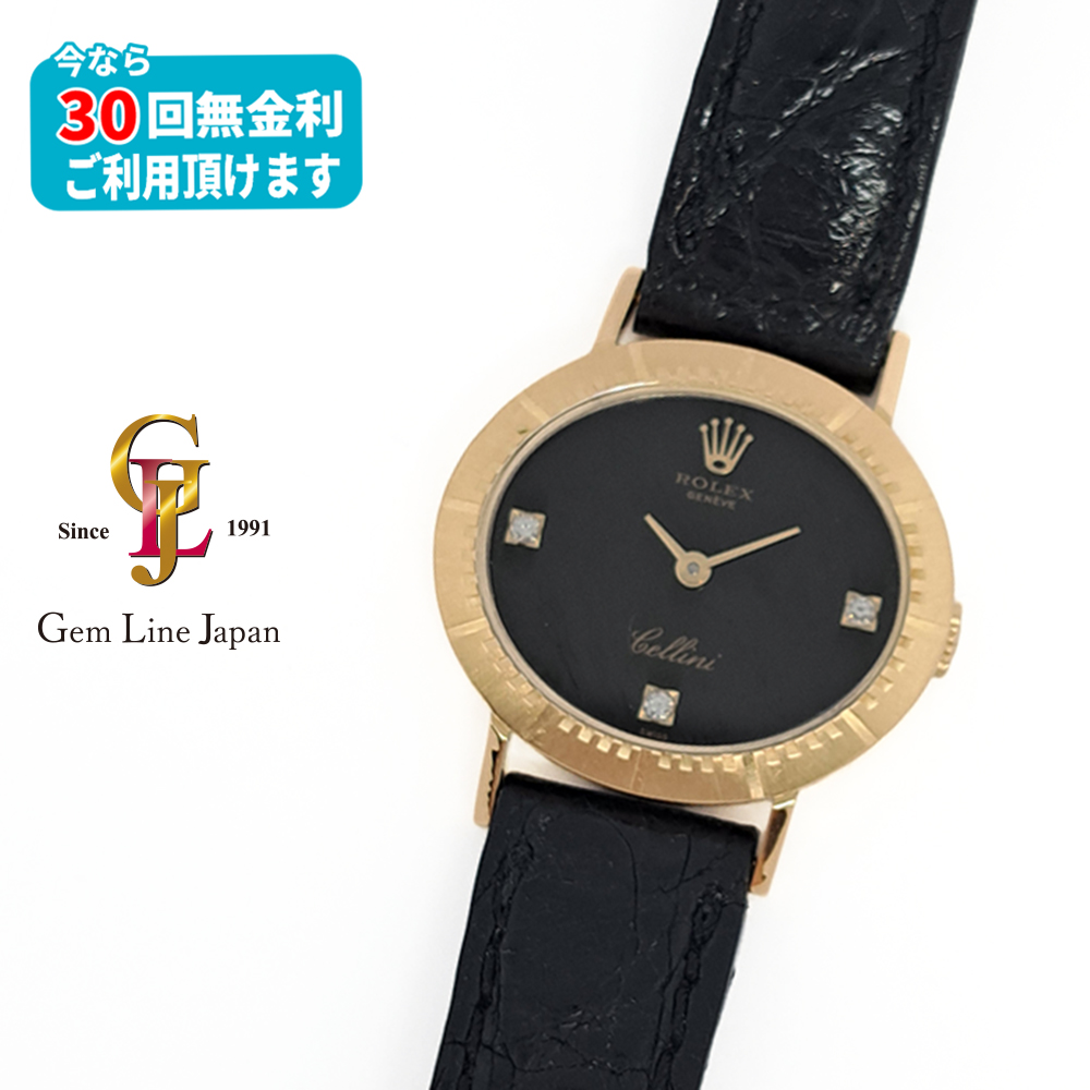 OH済 ロレックス チェリーニ 4081 E番 ブラック YG無垢 3P純正ダイヤ レディース 手巻き 時計