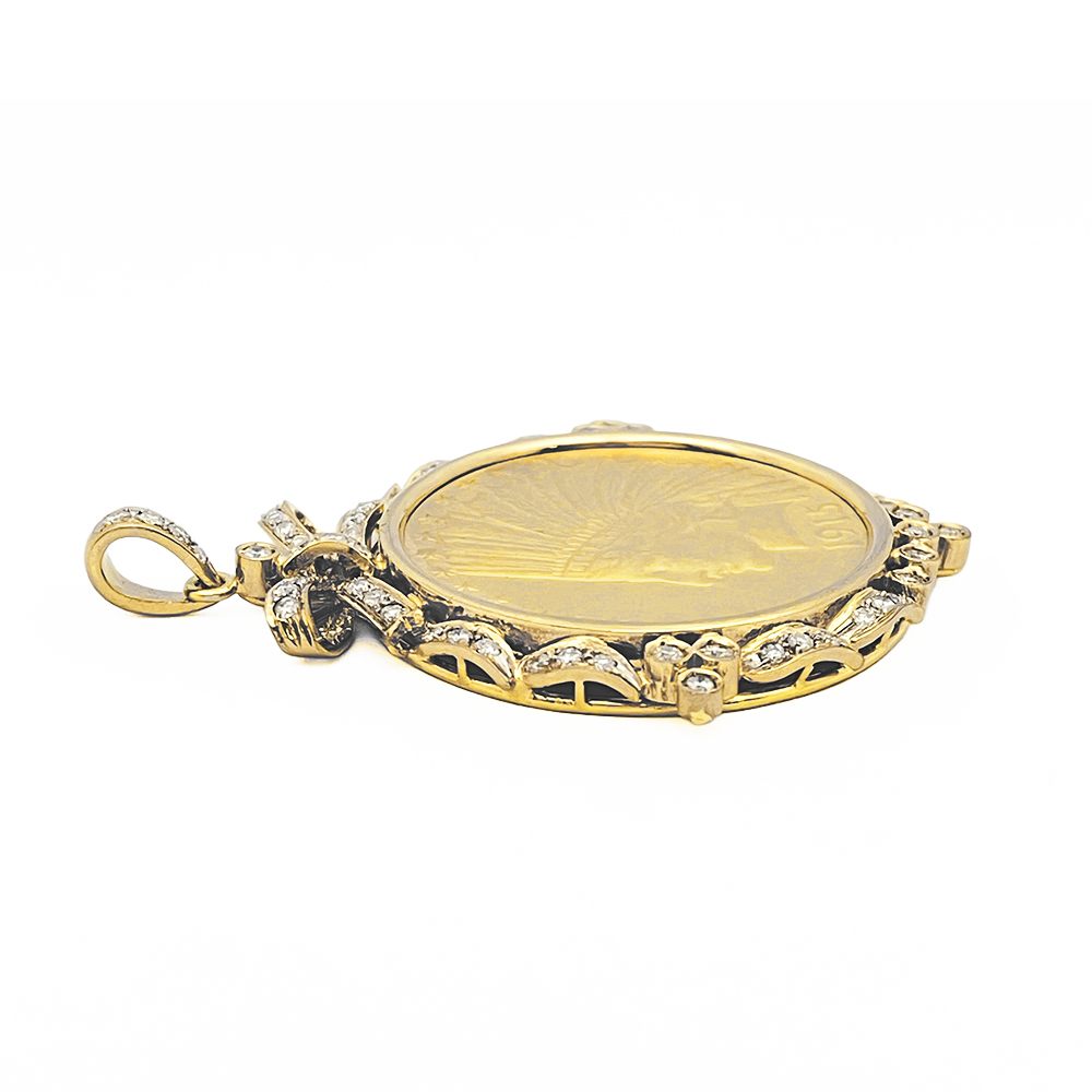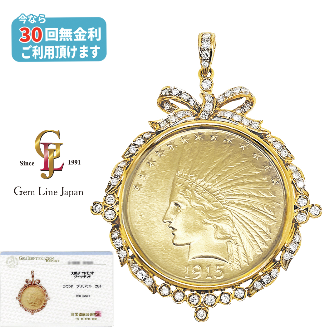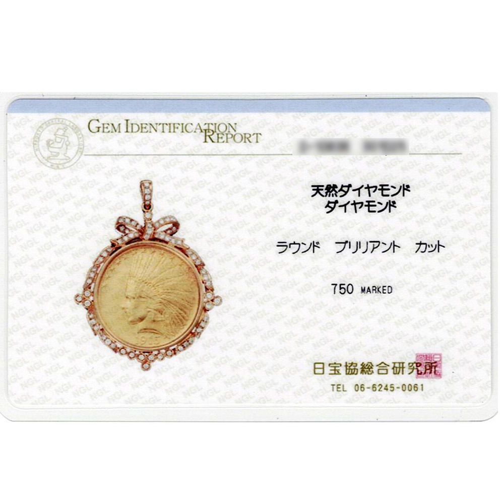 K21.6 K18 25.20g ヤング インディアン イーグル 10ドル 金貨 ダイヤモンド コイン トップ 日宝総研カード鑑付き