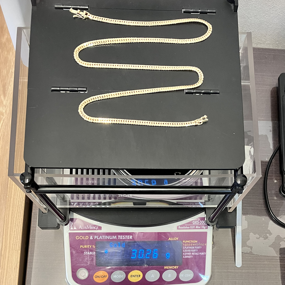 K18検定マーク付、30.26gの6面ダブル喜平ネックレスです。