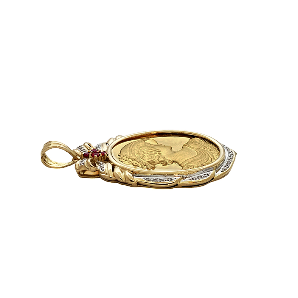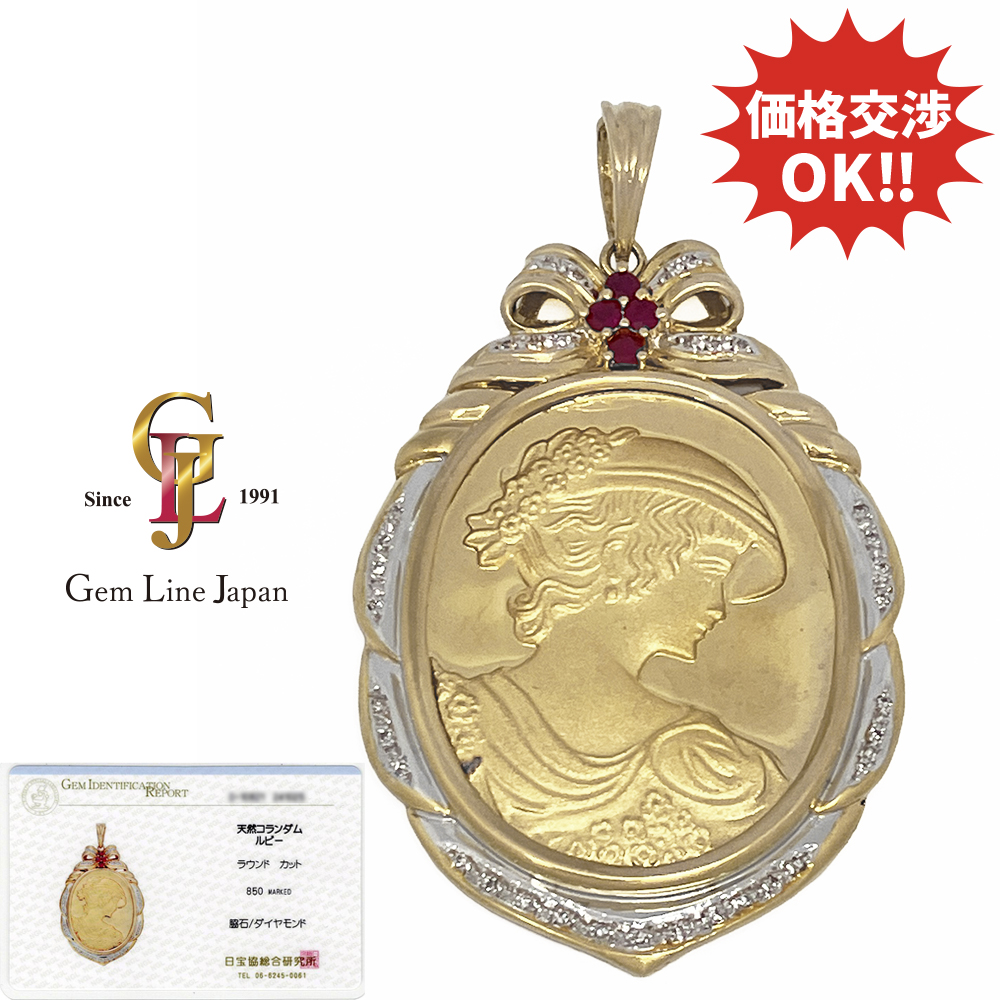 K24 K20 26.67g ルビー ダイヤモンド カメオモチーフ ペンダント トップ 日宝協総研カード鑑付