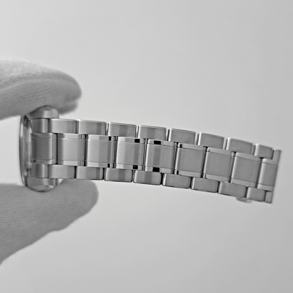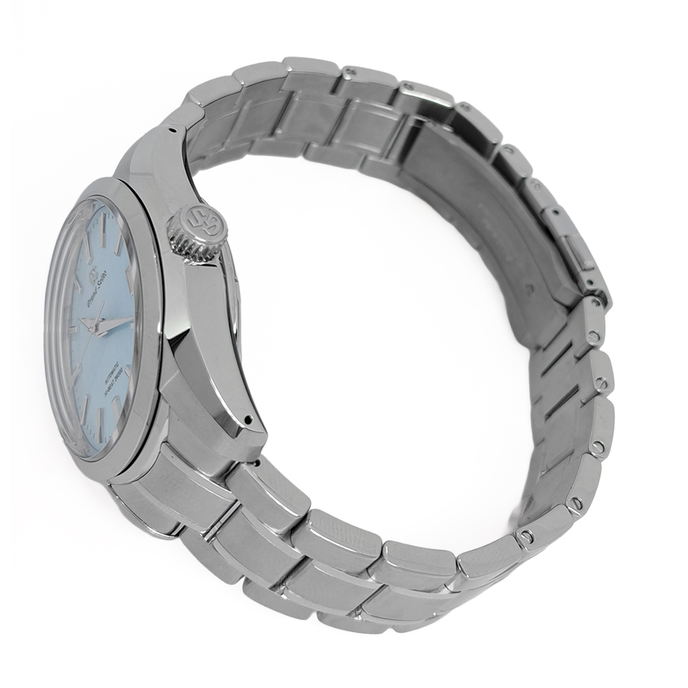 適度な大きさの37mmケースサイズに世界最高級クラスの耐食性に優れたエバーブリリアントスチールが特徴的な逸品です。アイスブルーダイヤルは高級感もあり、スッキリしていて見てて飽きの来ないデザインです。