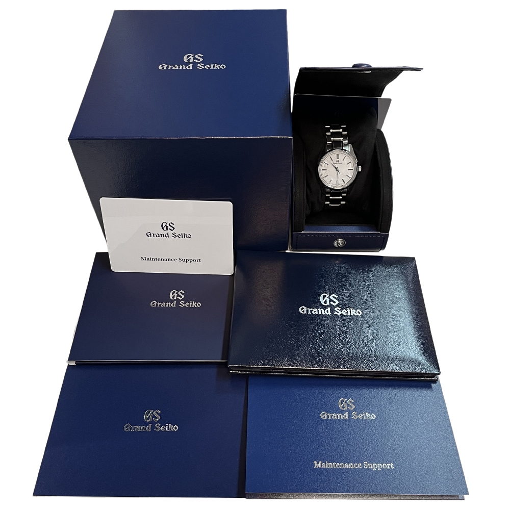 44GSの進化版のラインナップの中でも最小のケースサイズで、どなたにも装着しやすいサイズ感です。ホワイトダイヤルに鮮やかなブルーの秒針が良く映えて視認性にも優れており、ビジネスシーンからカジュアルスタイルまで大いに活躍してくれます。