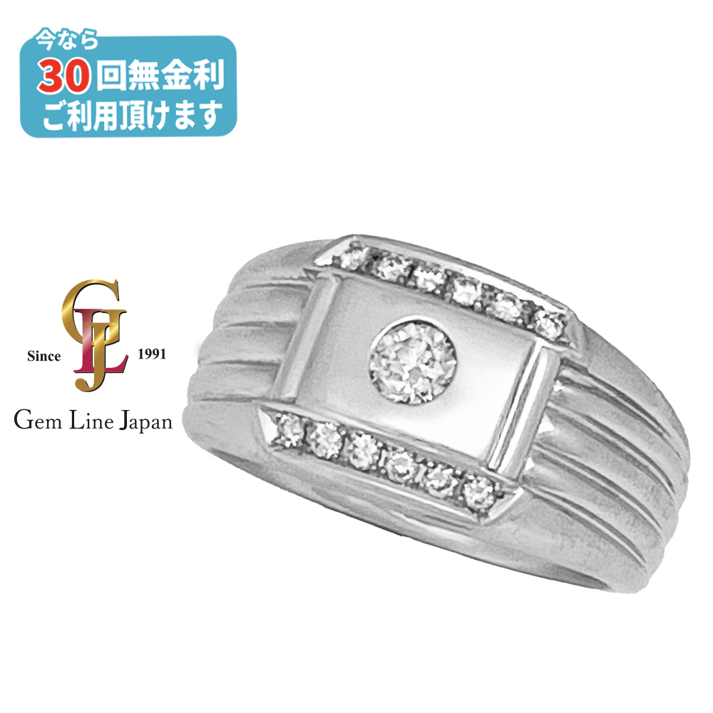 Pt900 ダイヤモンド 0.31ct 脇石 0.21ct プラチナ メンズリングが入荷しました。主石に無色透明に近い上質な一粒ダイヤモンド、その上下に良質なメレダイヤをセットした豪華に輝くメンズリングです。