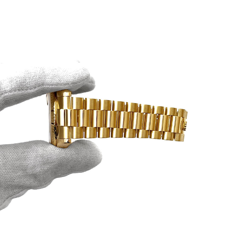 ロレックス デイデイト 118238A が入荷しました。ロレックスで唯一のフルスペルの曜日表示を備えるデイデイトは、手にしたユーザーにワンランク上のステータスと満足感を与えてくれます。腕元に馴染む36mmイエローゴールド無垢のケースは高級感が溢れ、最高峰モデルに相応しい仕上がりです。本品は目立つ傷のない非常にきれいな状態です。ギャランティーに2006年8月に国内正規販売店で購入した記載がございます。