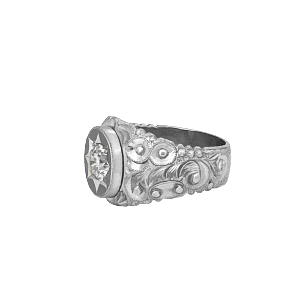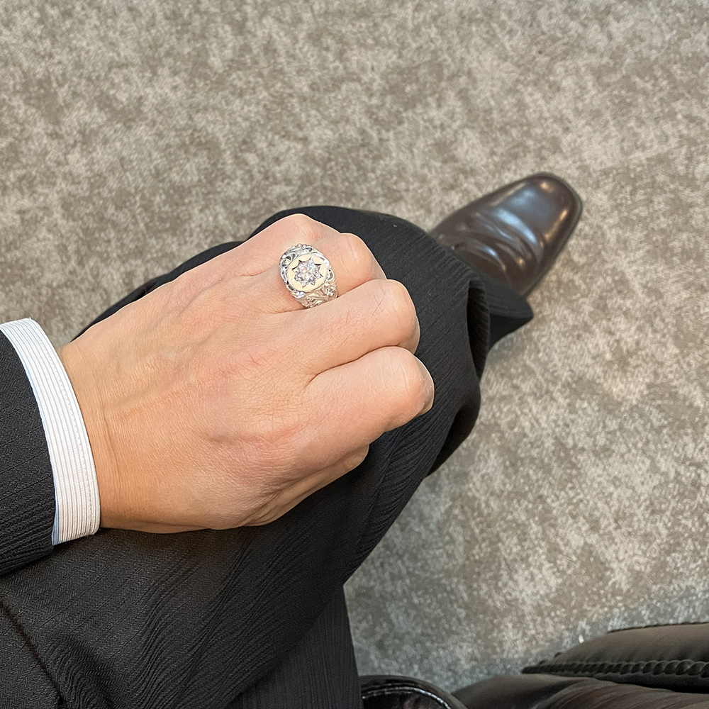 Pt900のダイヤ中央宝石研究所鑑定書付メンズ印台リングが入荷しました。リングのセンターに無色透明に近い良質なラウンドブリリアンカットの大粒ダイヤがセットされた豪華な一品です。