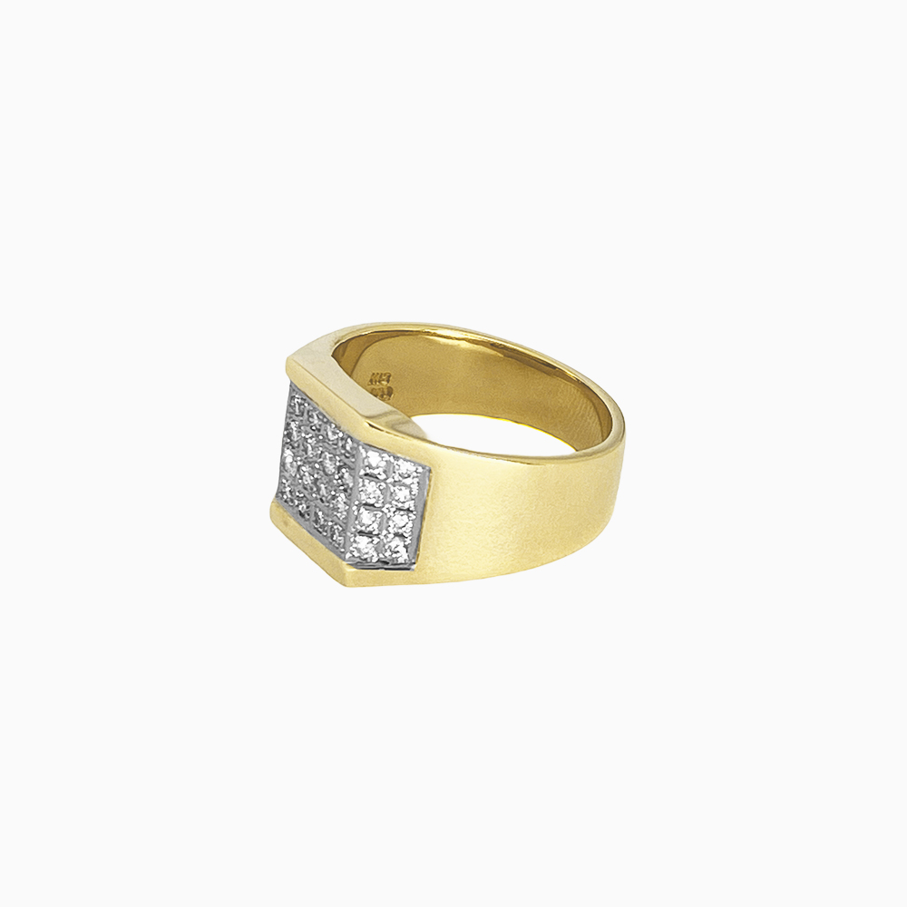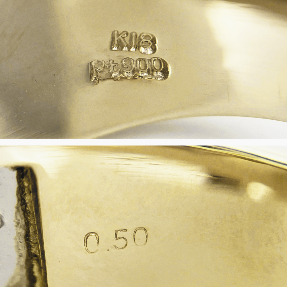 K18/Pt900 ダイヤモンド 0.50ct メンズリング が入荷しました。リング中央のプラチナの土台に上質なメレダイヤがキラキラと輝く高級感あふれるジュエリーです。