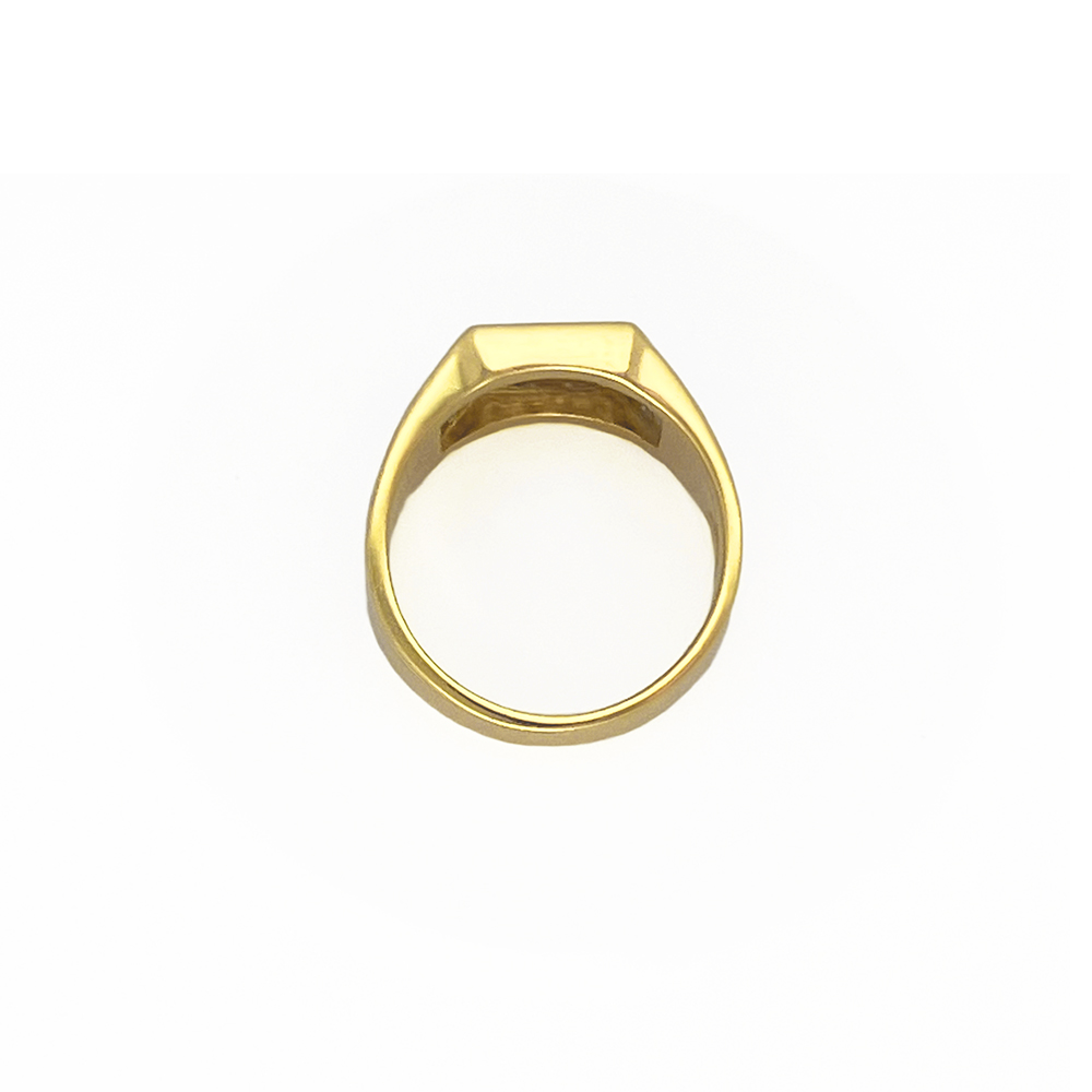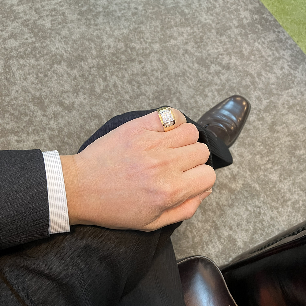イエローゴールドのリングは、しっかりとした幅と厚みを確保しつつも軽やかな着け心地です。シンプルなデザインになっておりますので普段使いにもご使用いただけます。