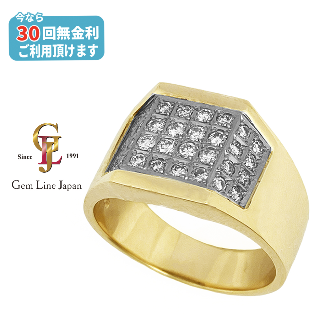K18/Pt900 10.40g 上質 パヴェ ダイヤモンド 0.50ct コンビ メンズ リング