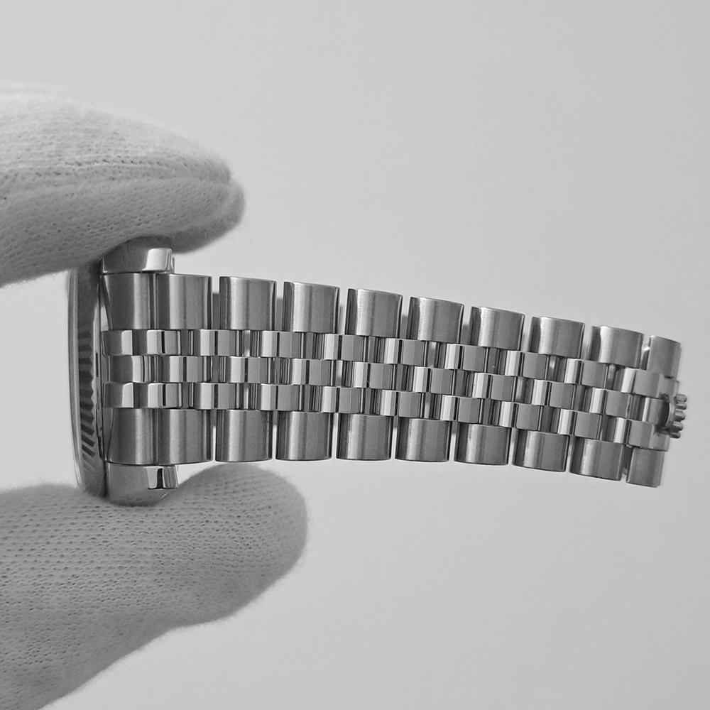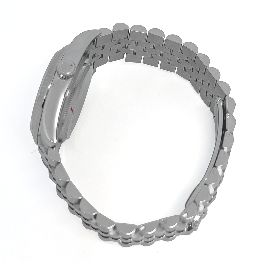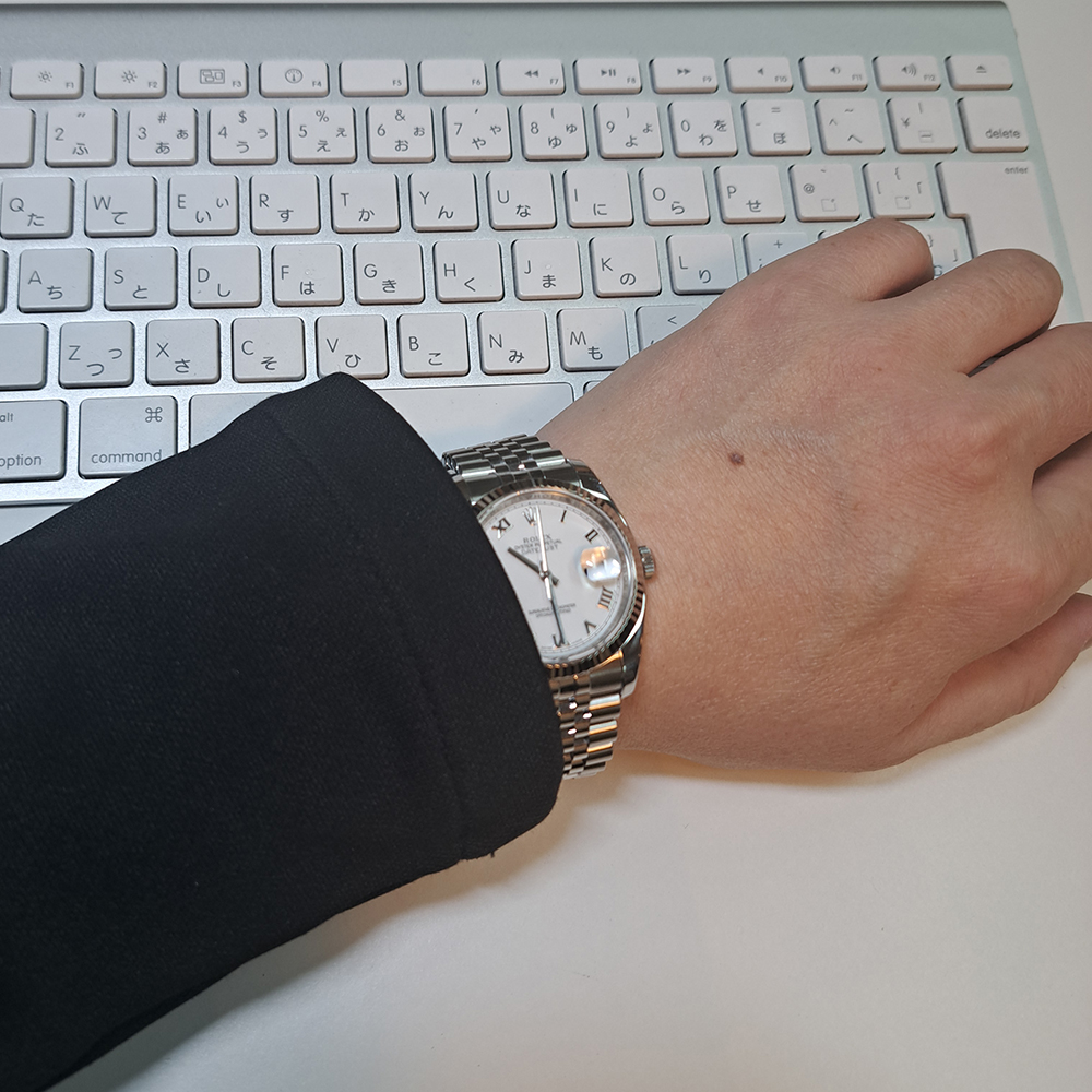 スッキリとしたフェイスに、ジュビリーブレスとホワイトゴールドのベゼルが高級感を醸し出してくれます。シンプルですので、スーツからカジュアルな洋服にも良く似合う時計です。