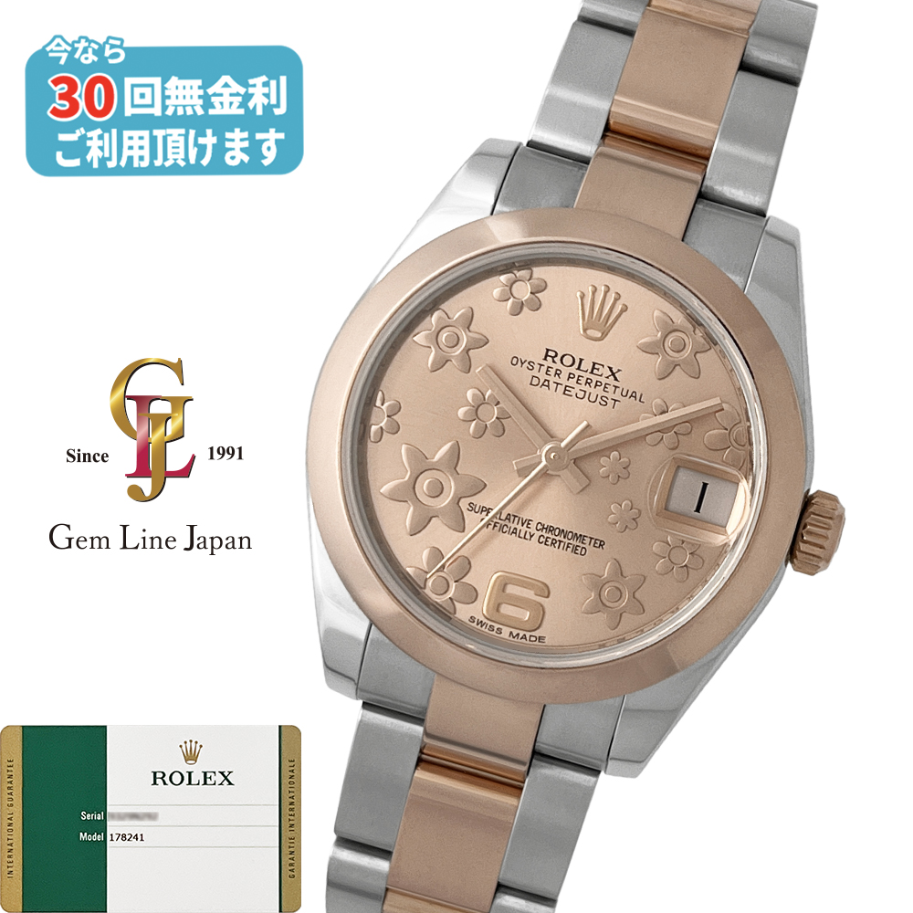 ロレックス デイトジャスト 178241 ランダム番 ピンクフラワー RG/SS ギャラ付 ボーイズ 自動巻 時計