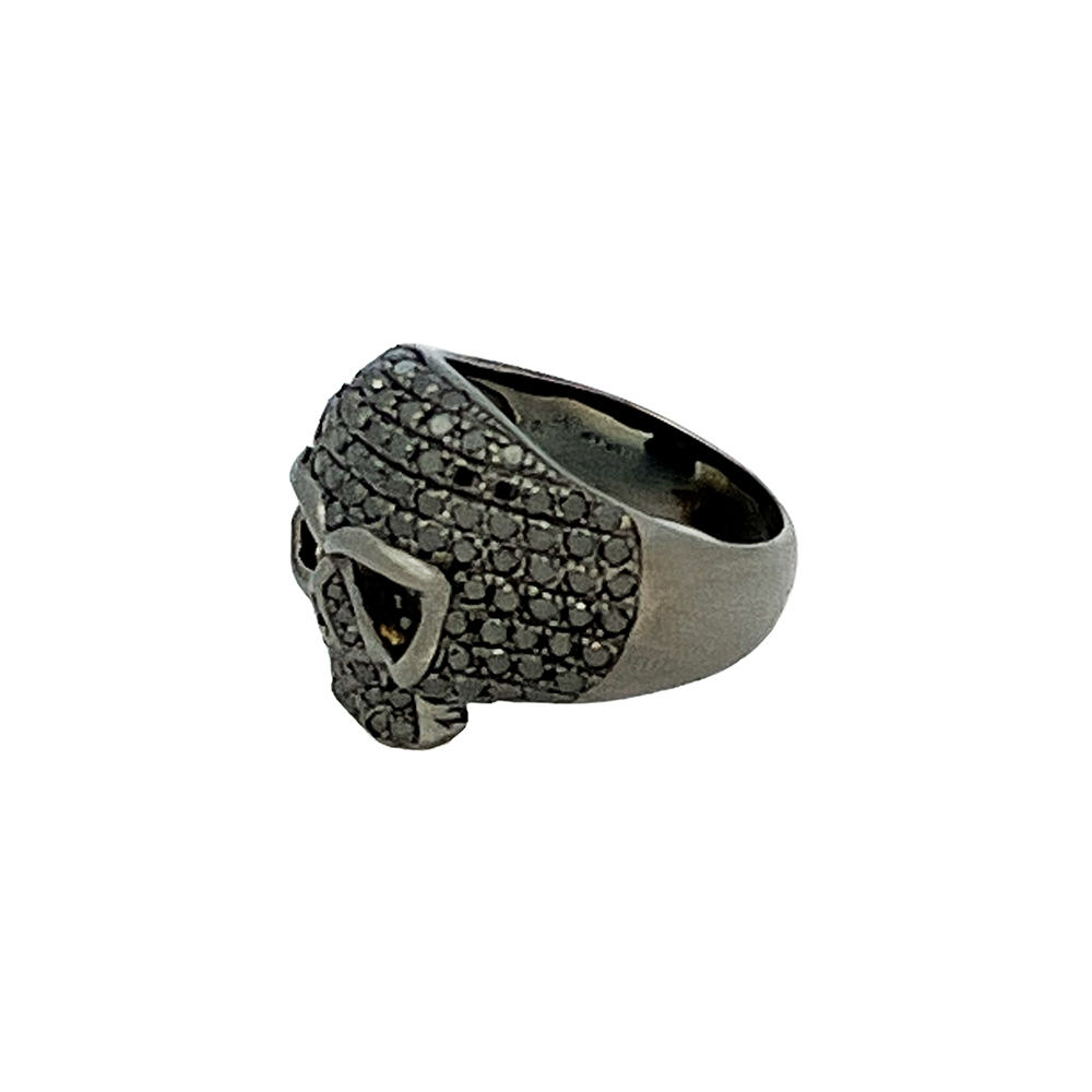 K18WG 16.74g パヴェ ブラックダイヤ 2.45ct メンズ スカル リング カード鑑別書付