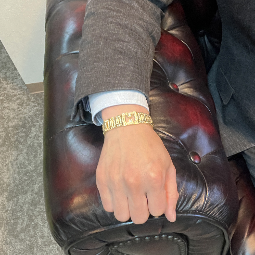 腕時計のブレスレット並みのボリューム感があり、全周からダイヤモンドがキラキラと輝く様子は必見です。手首にフィットしてくれるリンクブレスレットで着け心地良好です。