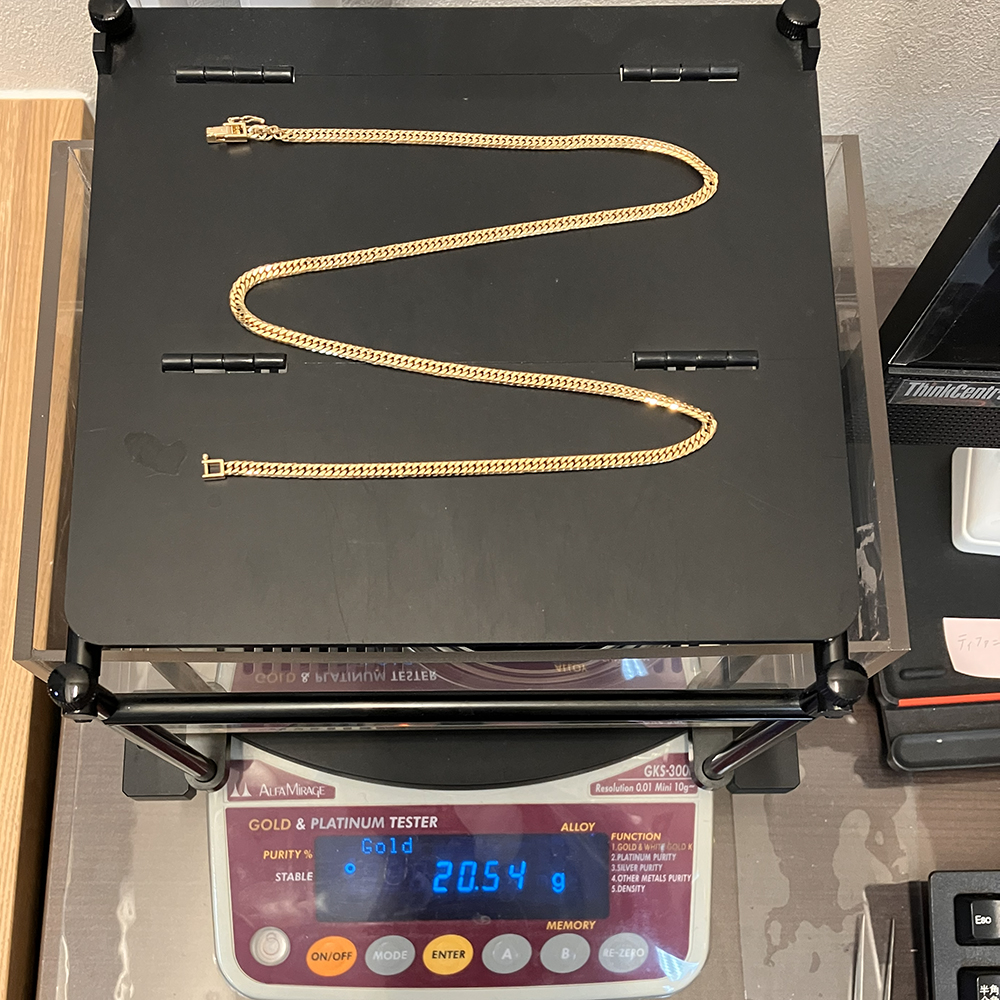 K18検定マーク付、20.54gの6面ダブル喜平ネックレスです。