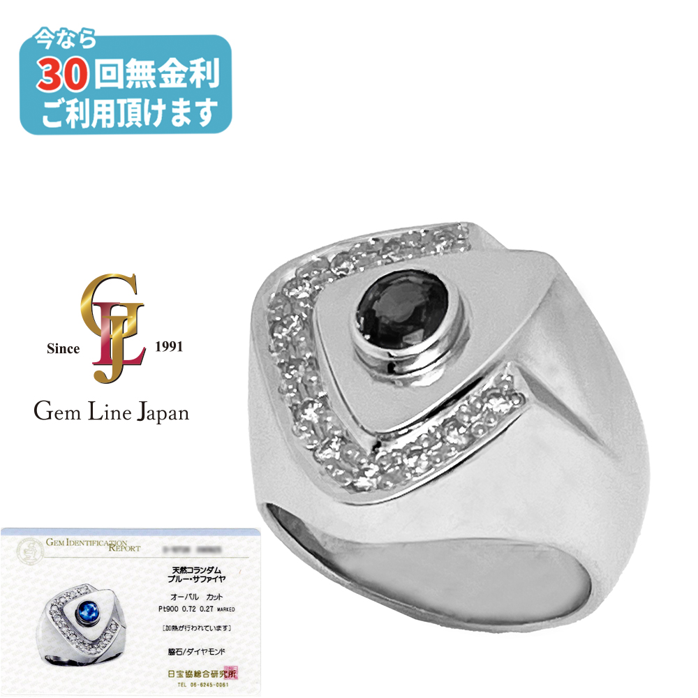 Pt900 32.21g ブルー サファイア 0.72ct ダイヤモンド 0.27ct プラチナ メンズ リング 日宝協総研カード鑑付