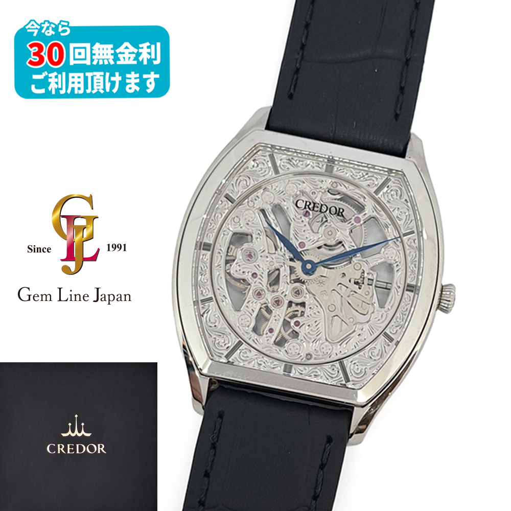セイコー クレドール シグノ GBBD981 プラチナ スケルトン ギャラ付 メンズ 手巻 時計