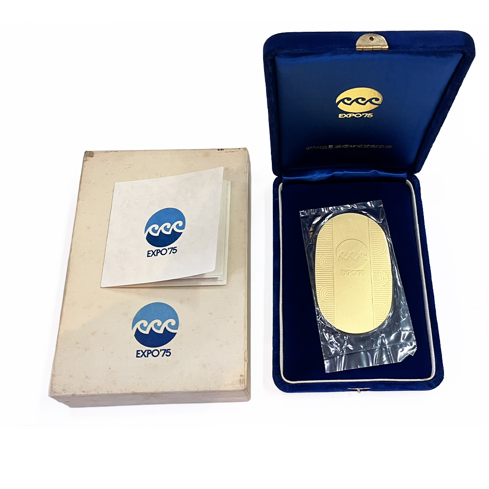 未開封 沖縄国際海洋博覧会公式 純金製小判が入荷しました。沖縄国際海洋博覧会(EXPO ’75)は、沖縄で開催された国際博覧会です。この博覧会を記念して発行された純金小判です。デザインは表面には博覧会のロゴや海洋博覧会であることから波の文様が刻まれ、裏面には博覧会の名称や開催年が刻まれています。