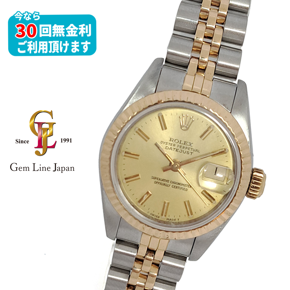 ロレックス デイトジャスト 69173 95番 YG/SS シャンパンゴールド レディース 自動巻 時計