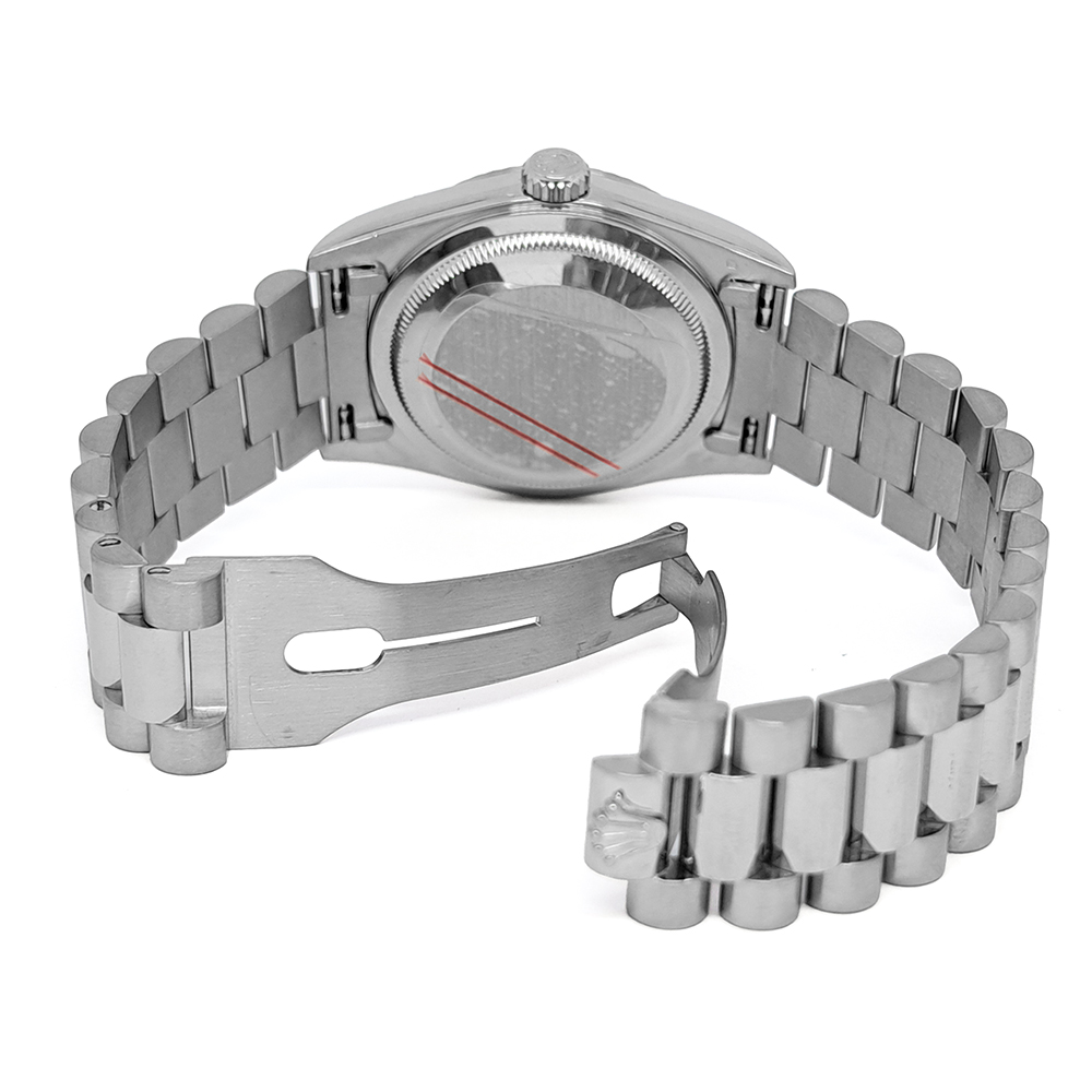 ロレックス デイデイト 18239 ホワイトゴールド無垢 ブラックダイヤルが入荷致しました。ホワイトゴールド無垢素材にブラックダイヤルの高級感とシックな雰囲気を併せもった逸品です。視認性や機能性にも優れた万能な腕時計です。こちらの商品は目立った傷等の無い綺麗な状態です。ギャランティに2000年9月にスイスにて購入した記載があります。