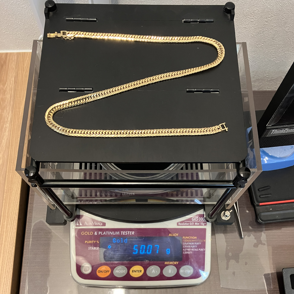 K18検定マーク付、50.07gの8面トリプル喜平ネックレスです。