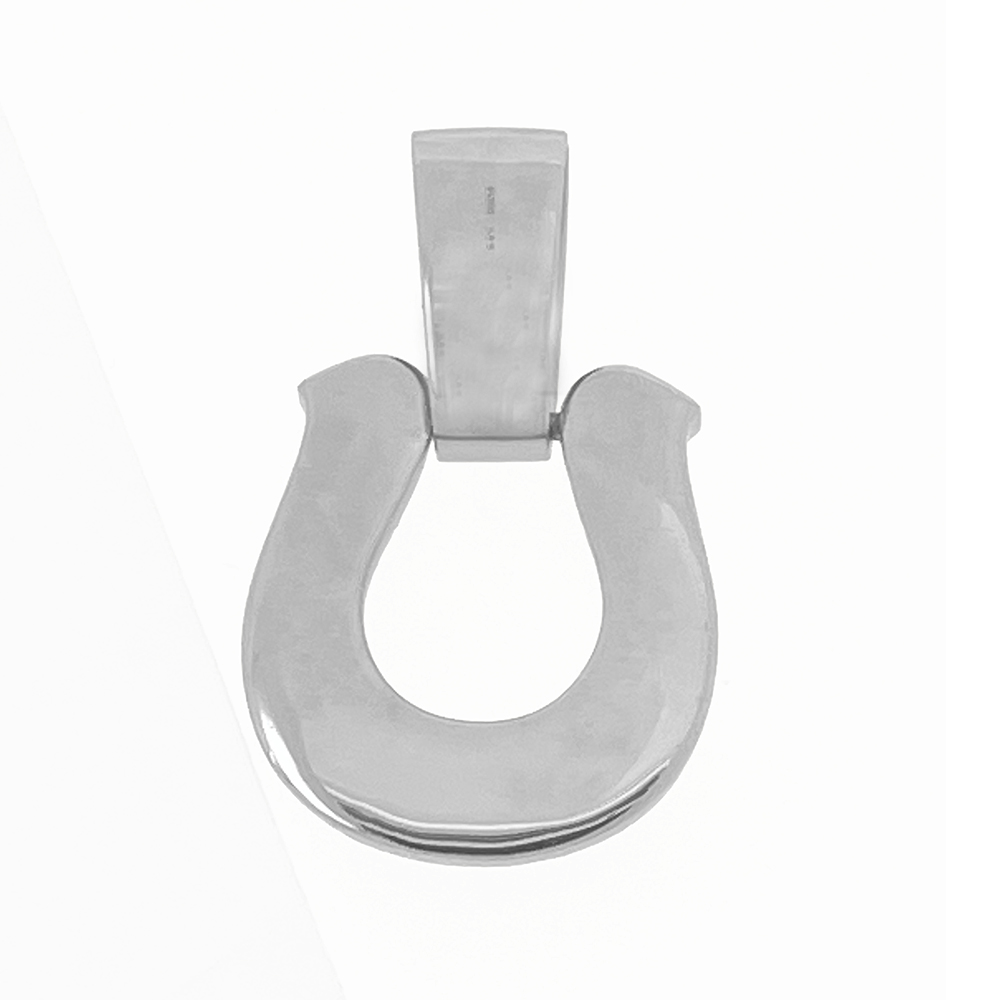 馬蹄のモチーフは、 幸運・成功などの意味がありラッキーアイテムとして古くから親しまれており、叶えたい夢や達成したい目標がある人におすすめです。 装着するとプラチナ台にセットしたダイヤがキラキラと輝きゴージャスな装いにしてくれます。バチカンは非常に大きく100gの喜平ネックレスも容易に通ります。お手持ちのネックレスに合わしてご使用ください。 ※装着写真のチェーンは別売です。100g・60cmの6面ダブル喜平ネックレスを使用しています。