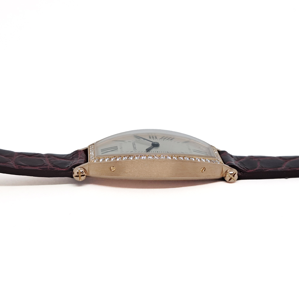 カルティエ トノー WE400331 純正ベゼルダイヤ ピンクゴールド無垢 シルバー Dバックル ギャラ付 レディース 手巻き 時計