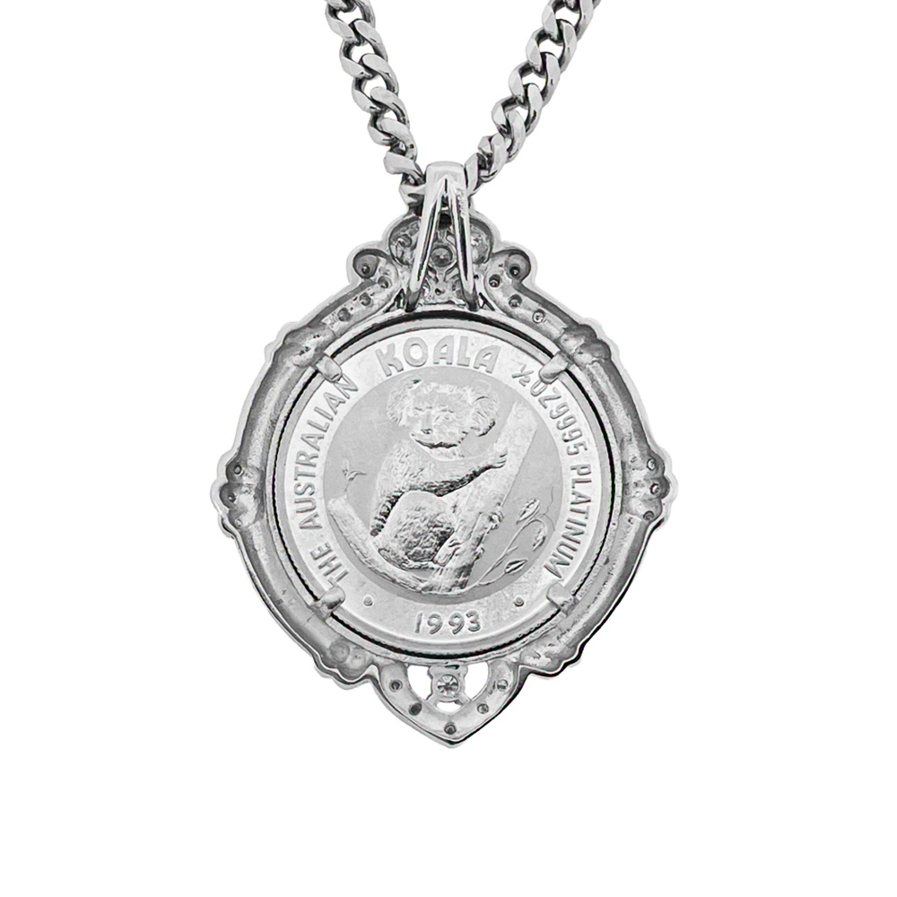 装着すると純プラチナのコインとダイヤモンドが胸元で豪華に輝きます。プラチナコインは、流通が少ないため希少価値が上がっており入手困難です。お早めに検討をお願いします。