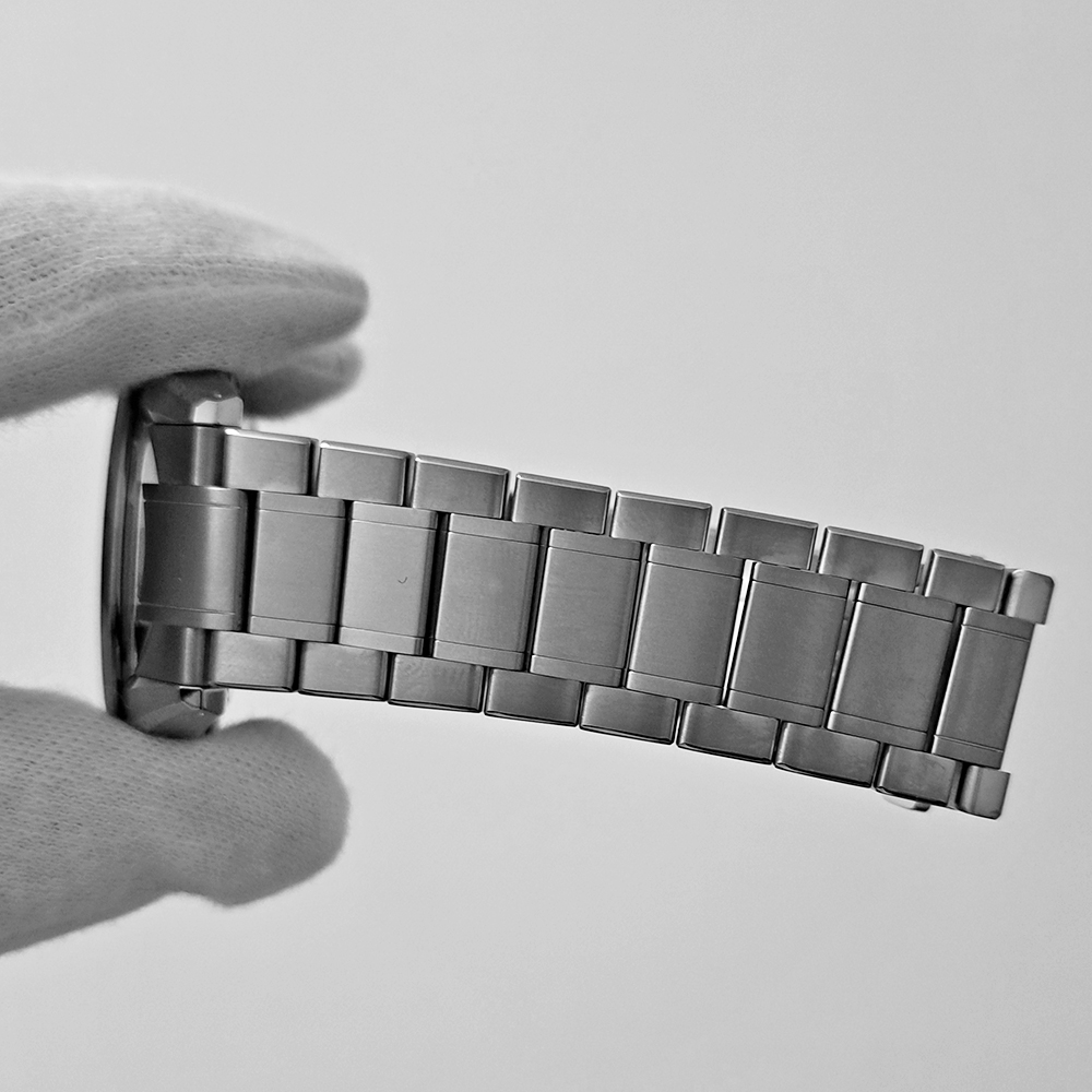 ケースやブレスレットには軽くてさびにくいブライトチタンを採用されており、末永くご愛用して頂け軽快な装着感を感じていただけます。非常に美しいブルーグリーンのグラデーションをお楽しみ頂きます。