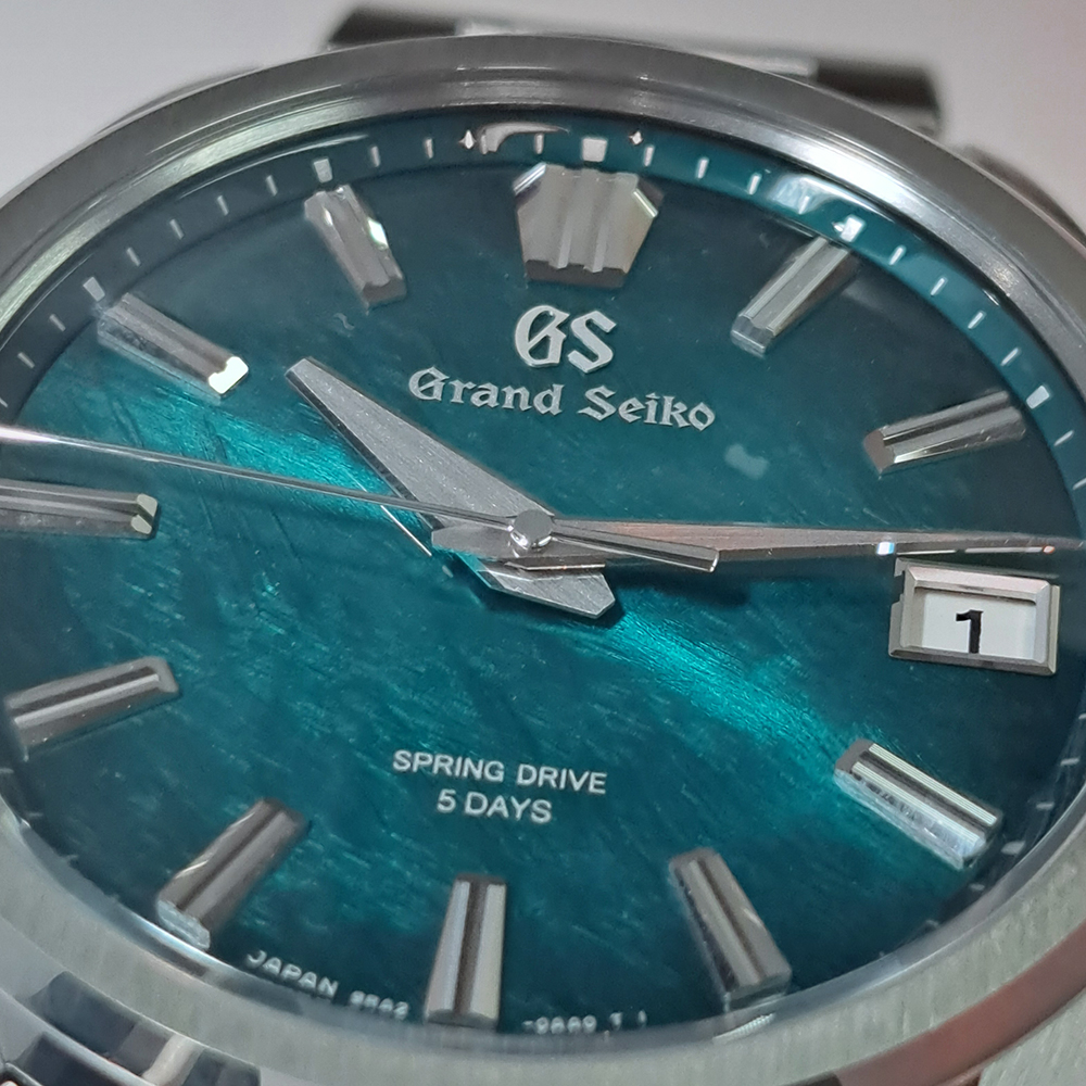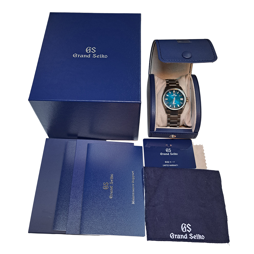 グランドセイコー SLGA025 エボリューション9 阿寺ブルー スプリングドライブが入荷致しました。長野県有数の景勝地として知られる阿寺渓谷、四季折々に表情を変える中、ひと際美しさを放ち続ける清流は「阿寺ブルー」と呼ばれ、透明度の高いブルーグリーンのグラデーションカラーをダイヤルで表現しております。スプリングドライブなので、自動巻きでありながらクォーツ並みの精度を誇りますので、時間に厳しいサラリーマンの方にもお勧めの商品です。ギャランティに2026年に国内正規販売店にて購入した記載があります。