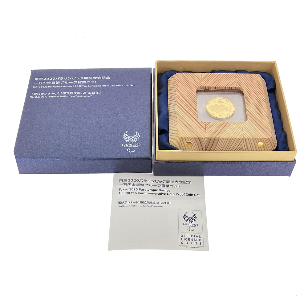 未使用品 2020東京パラリンピック競技大会記念 1万円 プルーフ金貨が入荷しました。表面に「聖火ランナー」と「国立競技場」と「心技体」が描かれており、裏面に東京2020パラリンピック競技大会エンブレムが描かれております。特製ケースは分解して組みなおすと金貨を鑑賞できる仕様となっております。金貨を密閉するアクリルケースには見る角度によって文字が変わるホログラムが入っております。