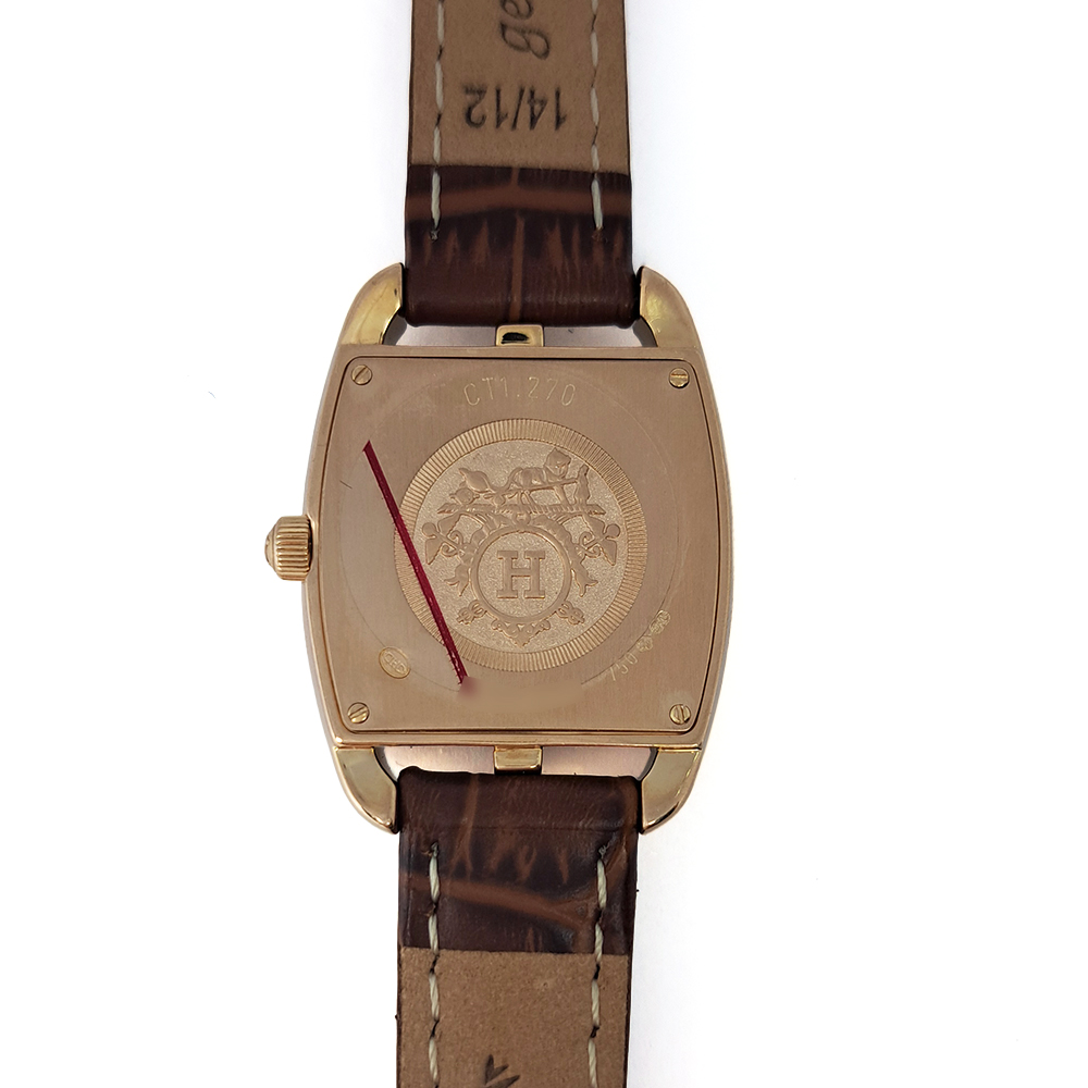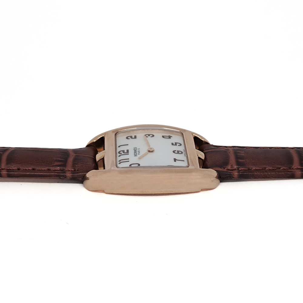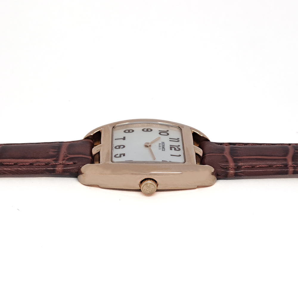 エルメス ケープ コッド 034672WW00が入荷致しました。ケープコッドの特徴である滑らかな美しい曲線は、エルメスが培ってきた上品な女性らしさを表現されていおり、ピンクゴールド無垢にホワイトシェル文字盤は相性も良く高級感を醸し出してくれます。こちらの商品は目立った傷等の無い綺麗な状態です。ギャランティに2018年に国内正規販売店にて購入した記載があります。2026年2月に当店で内部点検をし、バッテリーも交換していますので安心してご使用して頂けます。