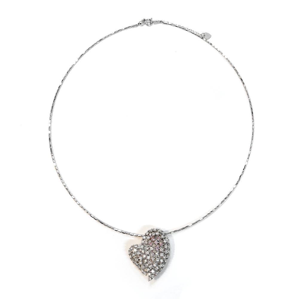 ハートモチーフのトップは、チェーンを外してブローチにする事もでき、様々なシーンでご着用いただけます。また柔らかいチェーンと異なり、装着時に綺麗な円のフォルムを保つため、デコルテがすっきりし、上品で洗練された印象を与えてくれます。