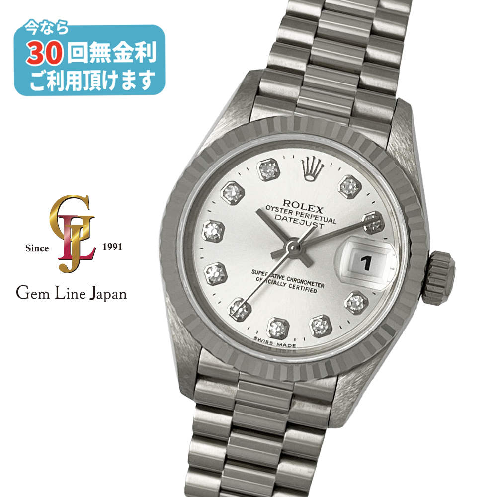 ロレックス デイトジャスト 69179G U番 シルバー/純正10Pダイヤ WG無垢 レディース 自動巻 時計